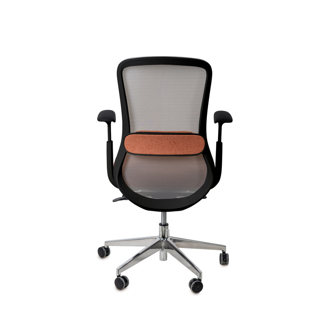 El respaldo, fabricado en malla transpirable, facilita la circulación del aire, evitando la acumulación de calor y garantizando un confort duradero incluso durante sesiones prolongadas de uso.