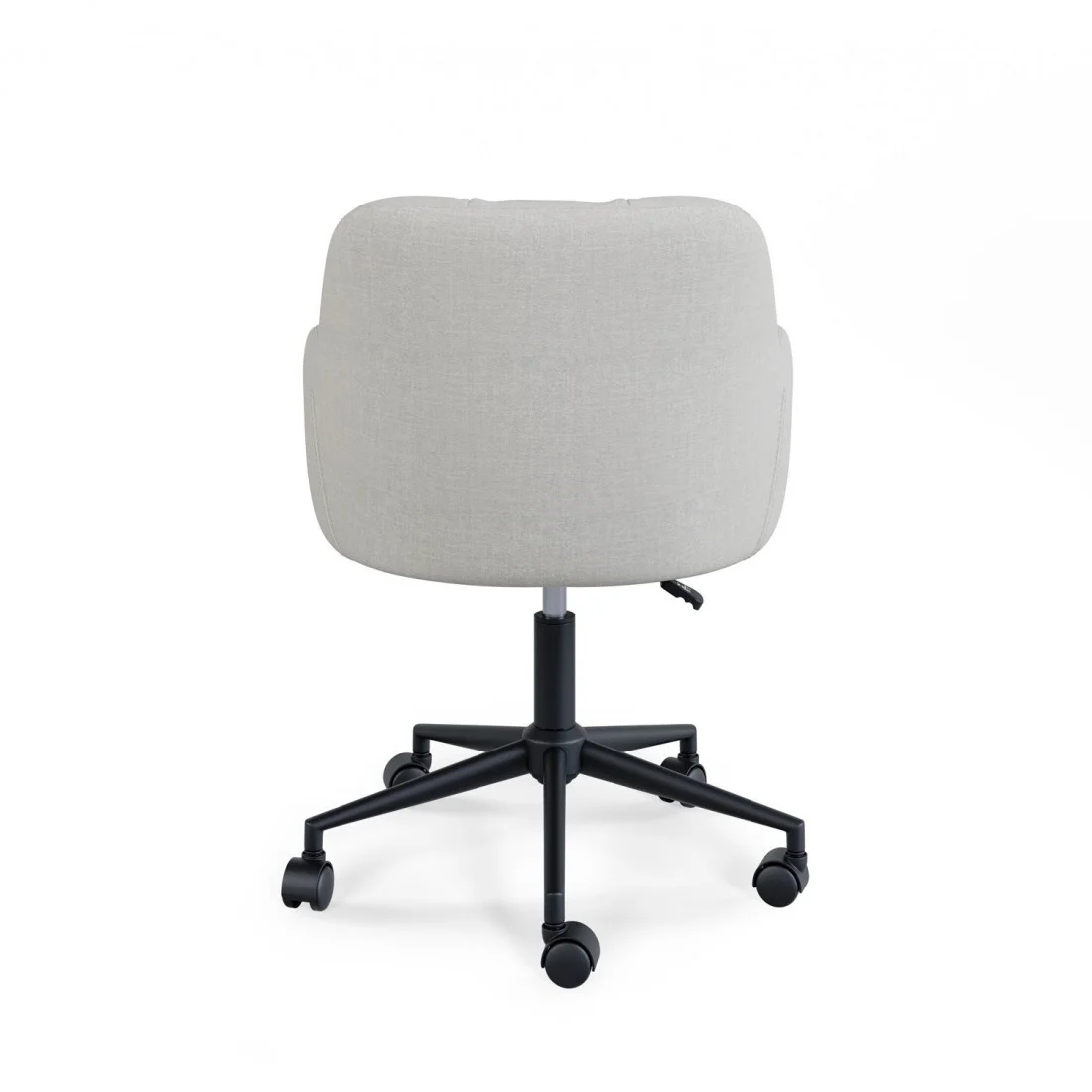 La base metálica negra incluye ruedas giratorias de 360º, lo que permite una movilidad fluida y versátil en cualquier entorno. Además, su sistema de ajuste de altura mediante pistón de gas facilita la personalización de la silla, adaptándose a las preferencias y necesidades de cada usuario.