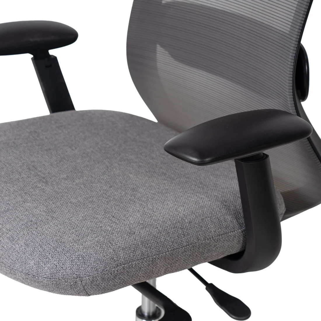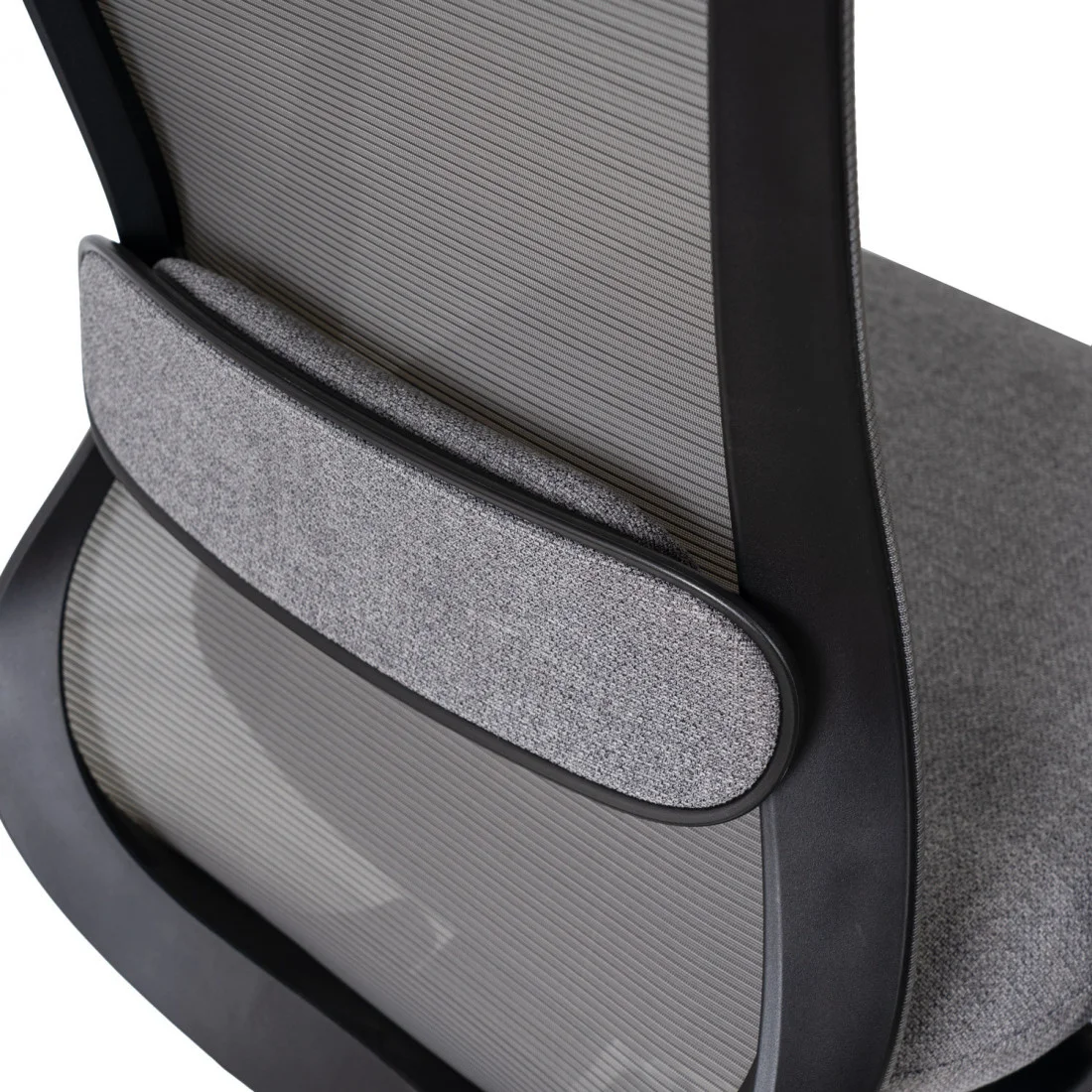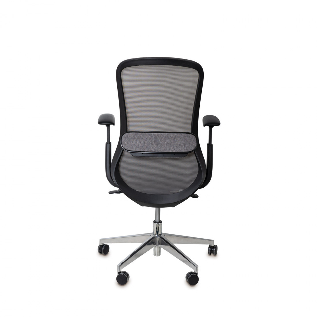El respaldo, fabricado en malla transpirable, facilita la circulación del aire, evitando la acumulación de calor y garantizando un confort duradero incluso durante sesiones prolongadas de uso.