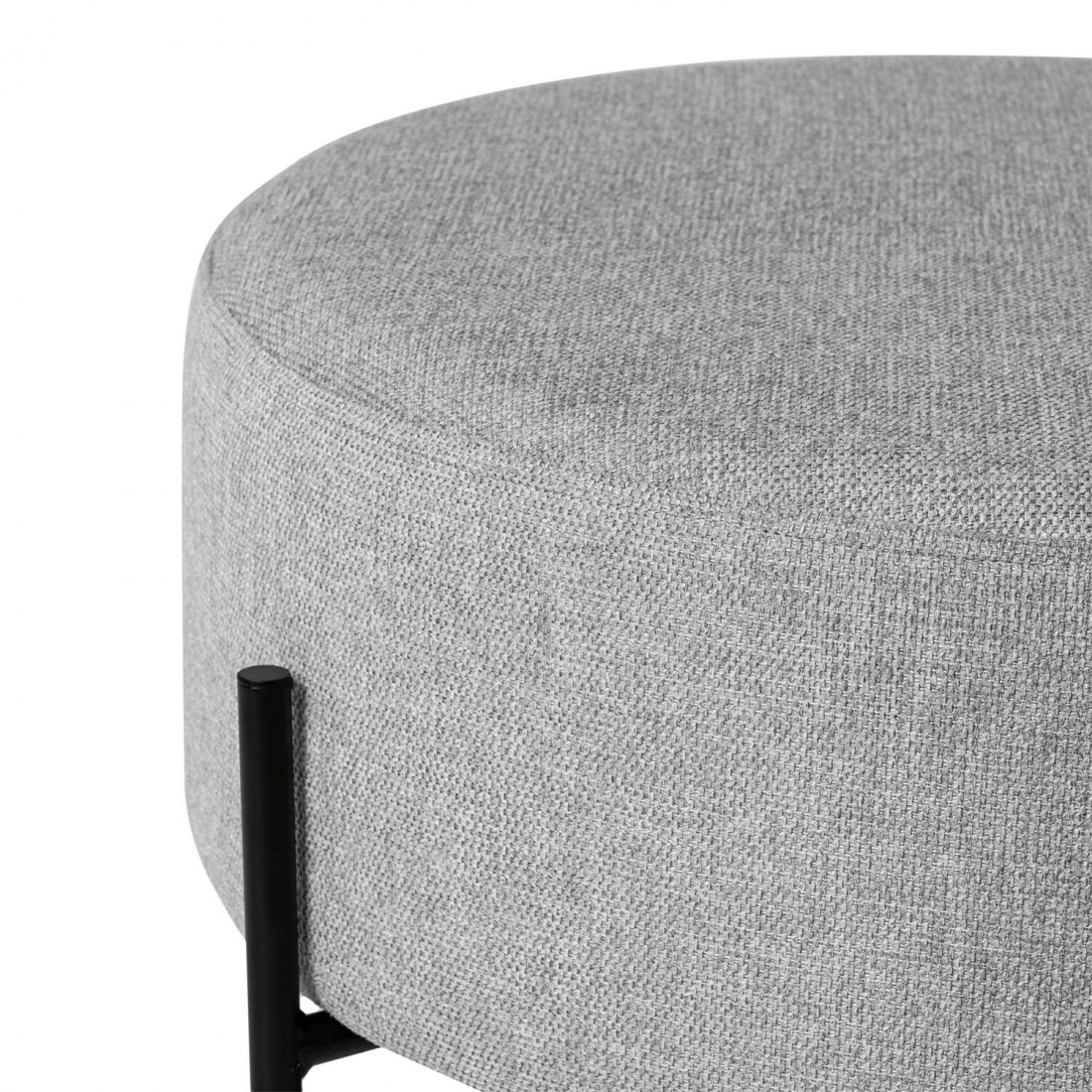 El diseño redondo y genoroso del puff CAMILO proporciona un asiento cómodo y amplio, ideal para relajarse o para utilizarlo como reposapiés en zonas de descanso.