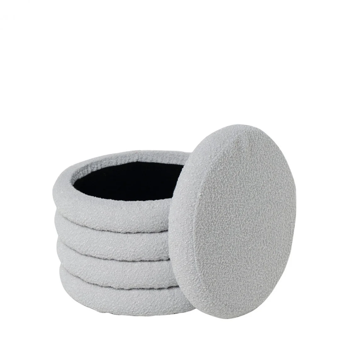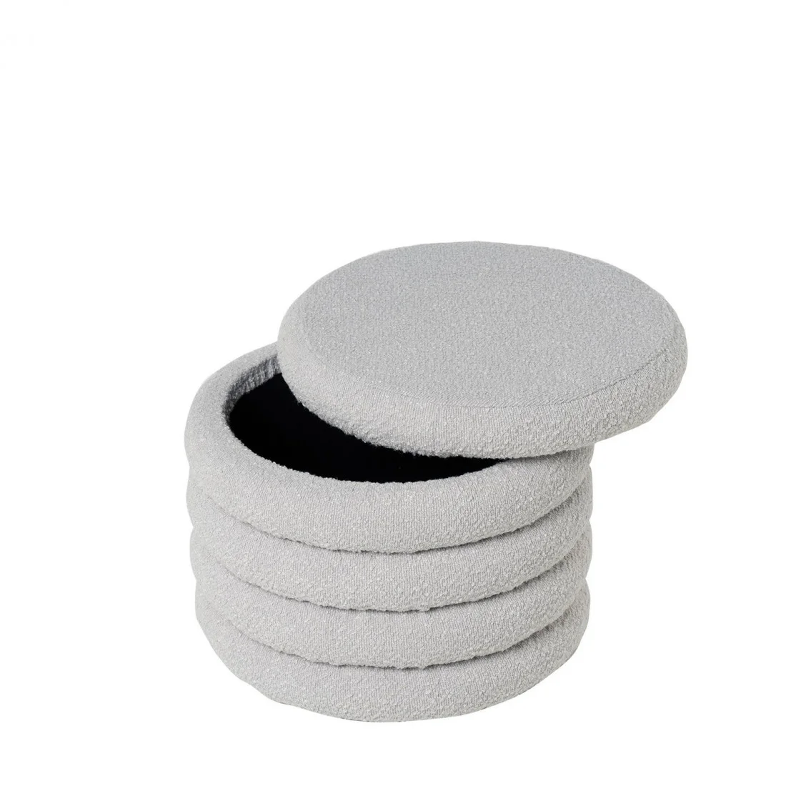 Su estructura cilíndrica esconde un práctico secreto: la tapa superior se retira con facilidad, revelando un compartimento interior perfecto para almacenar mantas, revistas o pequeños objetos del día a día. Esta funcionalidad lo convierte en una opción ideal para espacios reducidos o ambientes que apuestan por el orden sin renunciar al estilo.