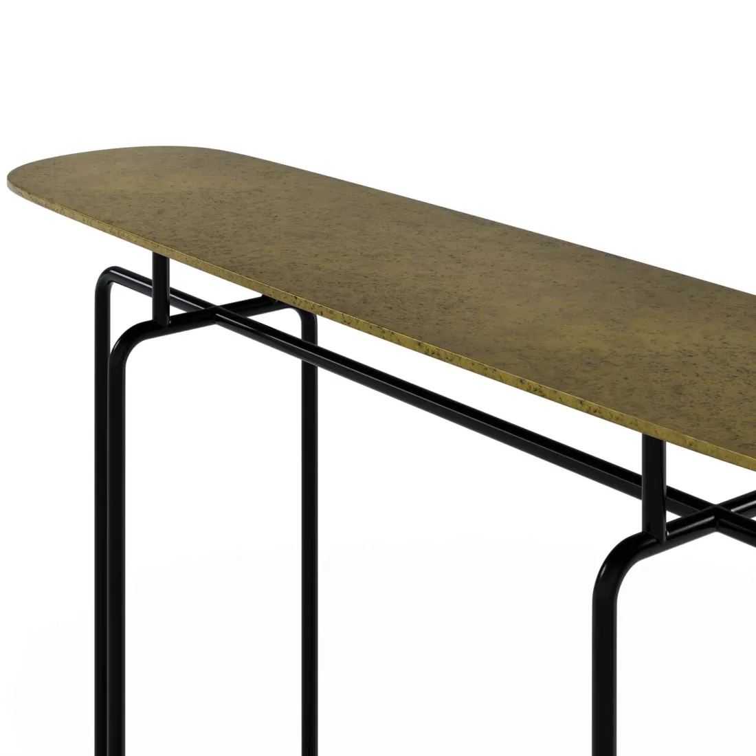 El contraste entre el brillo metálico dorado y la base de hierro negro refuerza su estilo industrial con un toque de elegancia vintage, ideal para quienes buscan una pieza con personalidad.