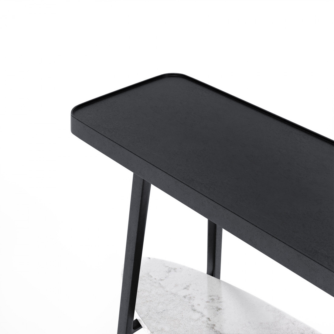 El contraste entre la frialdad del metal y la nobleza del mármol crea un equilibrio visual único, ideal para integrarse en ambientes modernos, industriales o incluso clásicos con un toque renovado. Ubícala en un recibidor para una entrada imponente o en el salón como apoyo decorativo.