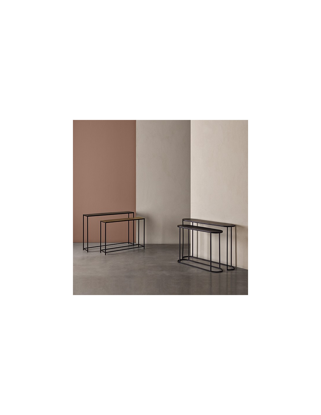 La consola YURI combina la calidez de la madera de roble con la fuerza visual de una estructura metálica negra, dando como resultado una pieza sobria y contemporánea.