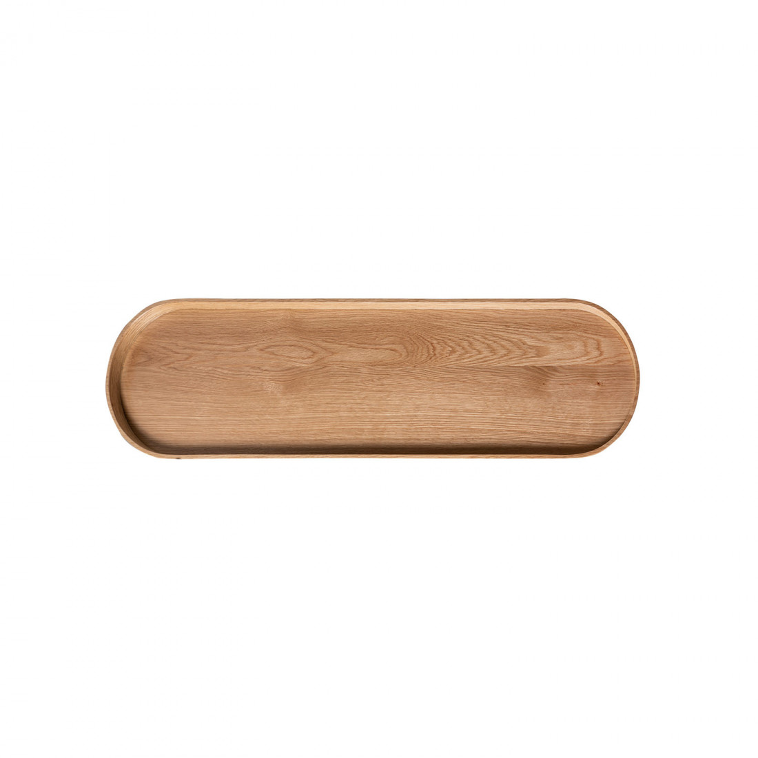 El frente del cajón, también en roble, se realza con una raya fresada lacada en negro, que aporta textura y un contraste...