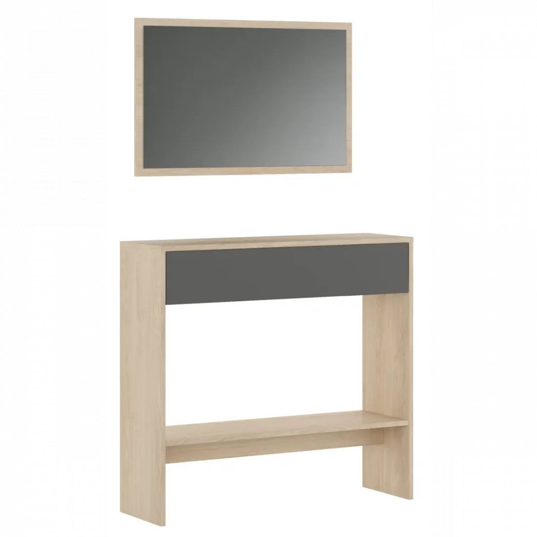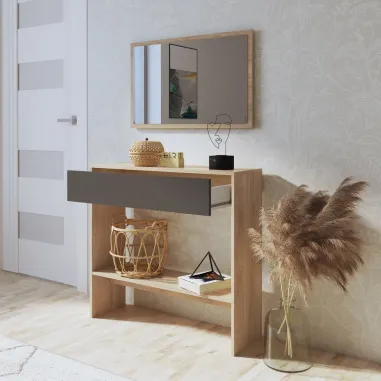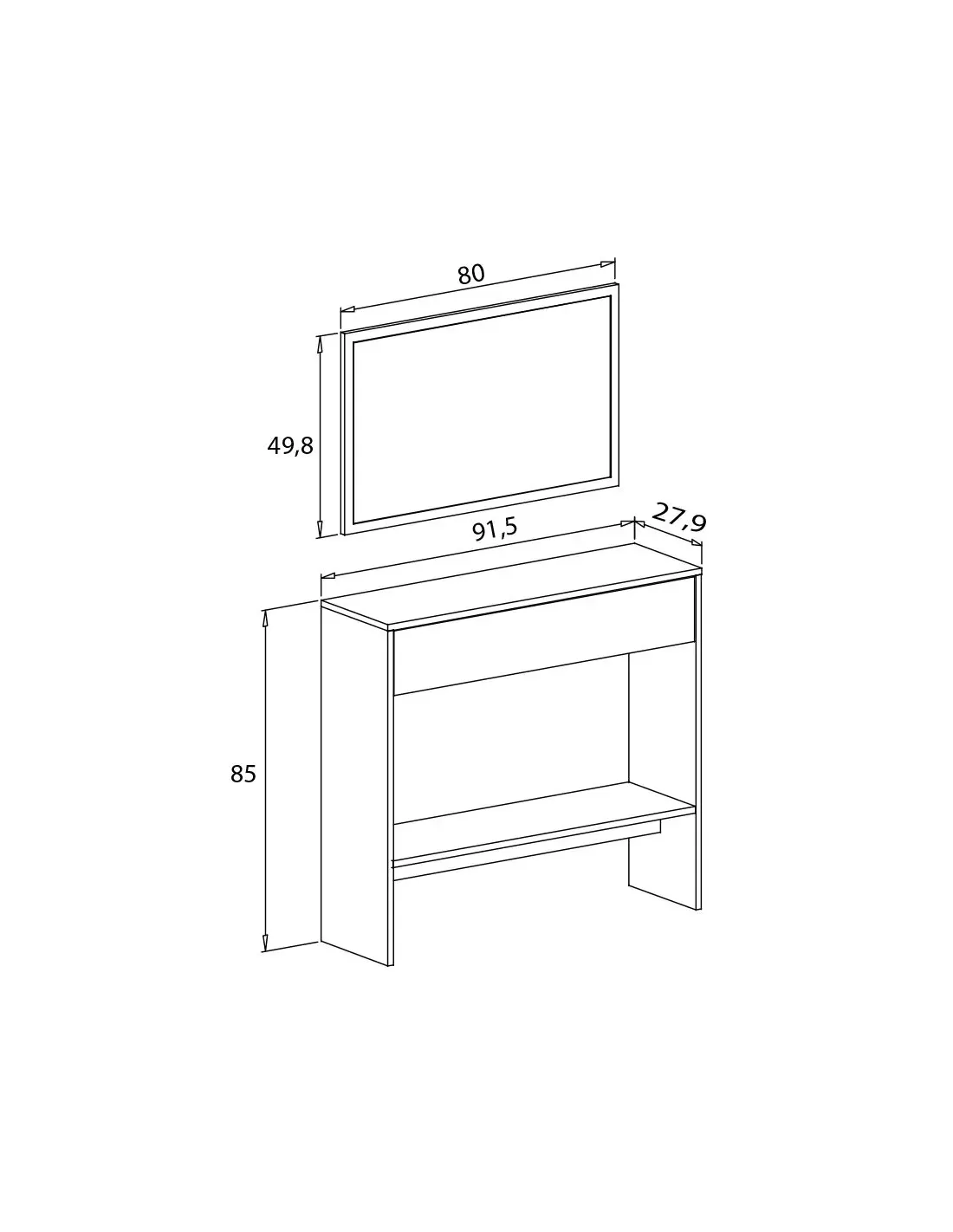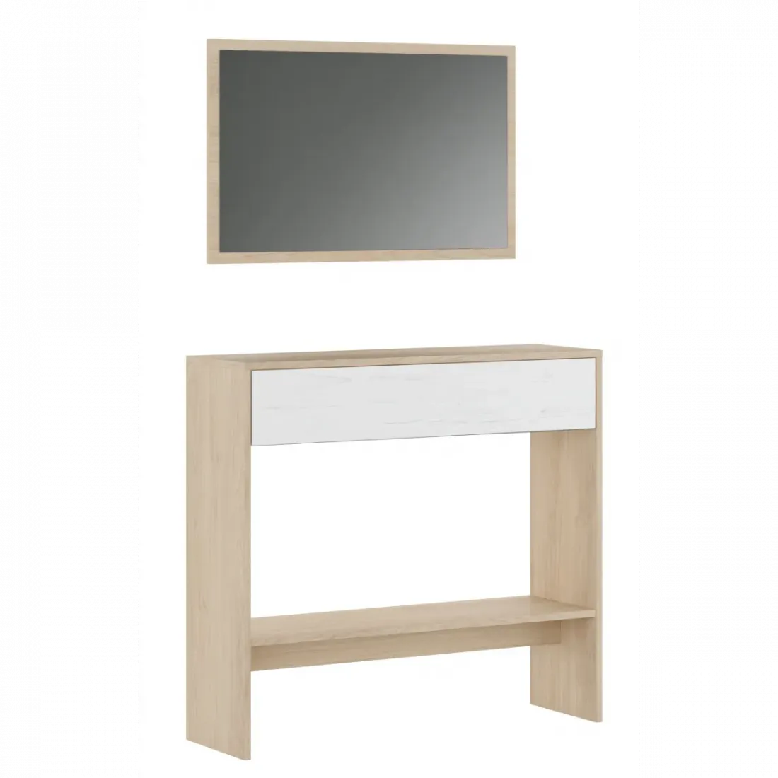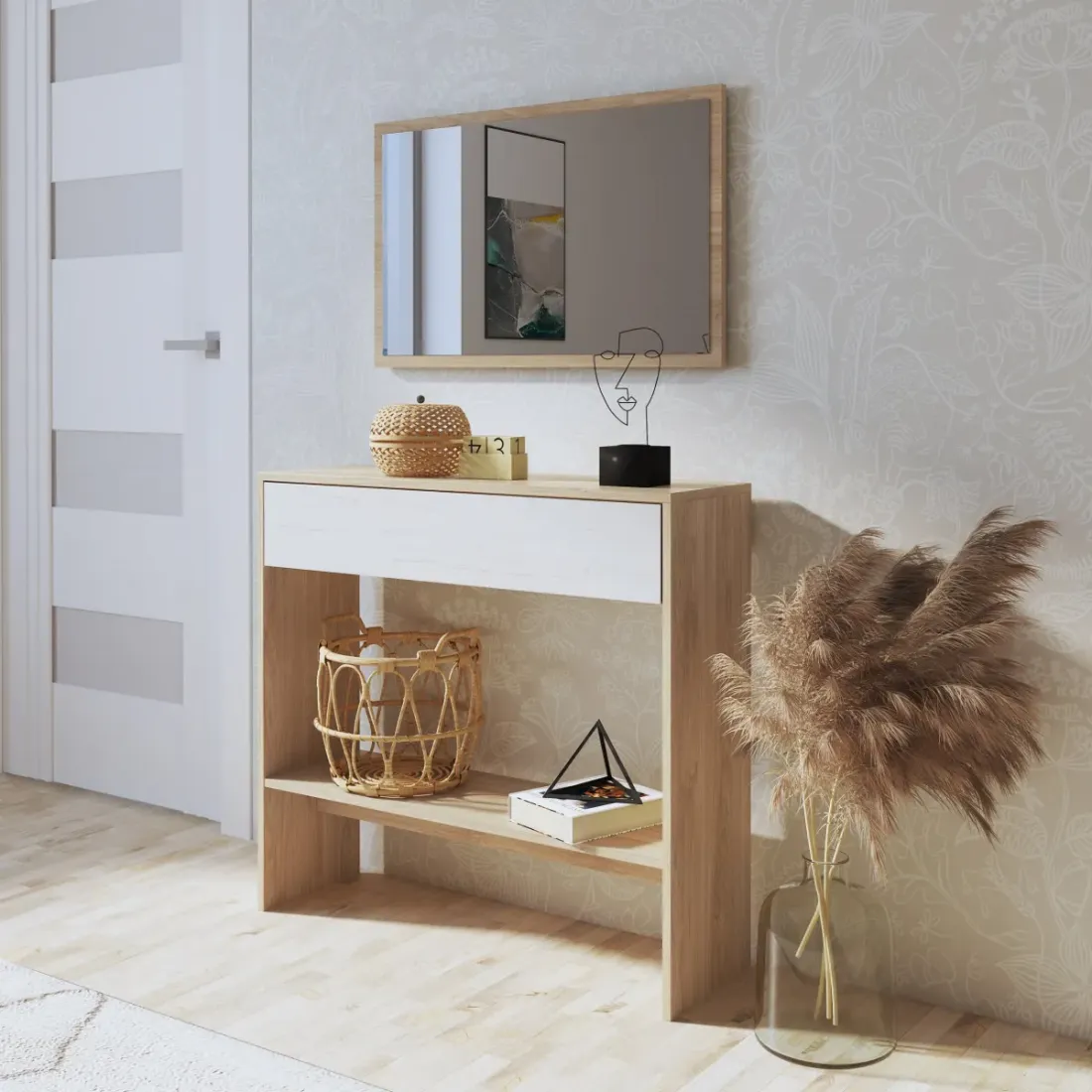 Mueble recibidor con cajón de la serie Donald compuesto por un espejo y un mueble bajo de 91,5 cm. de largo.
