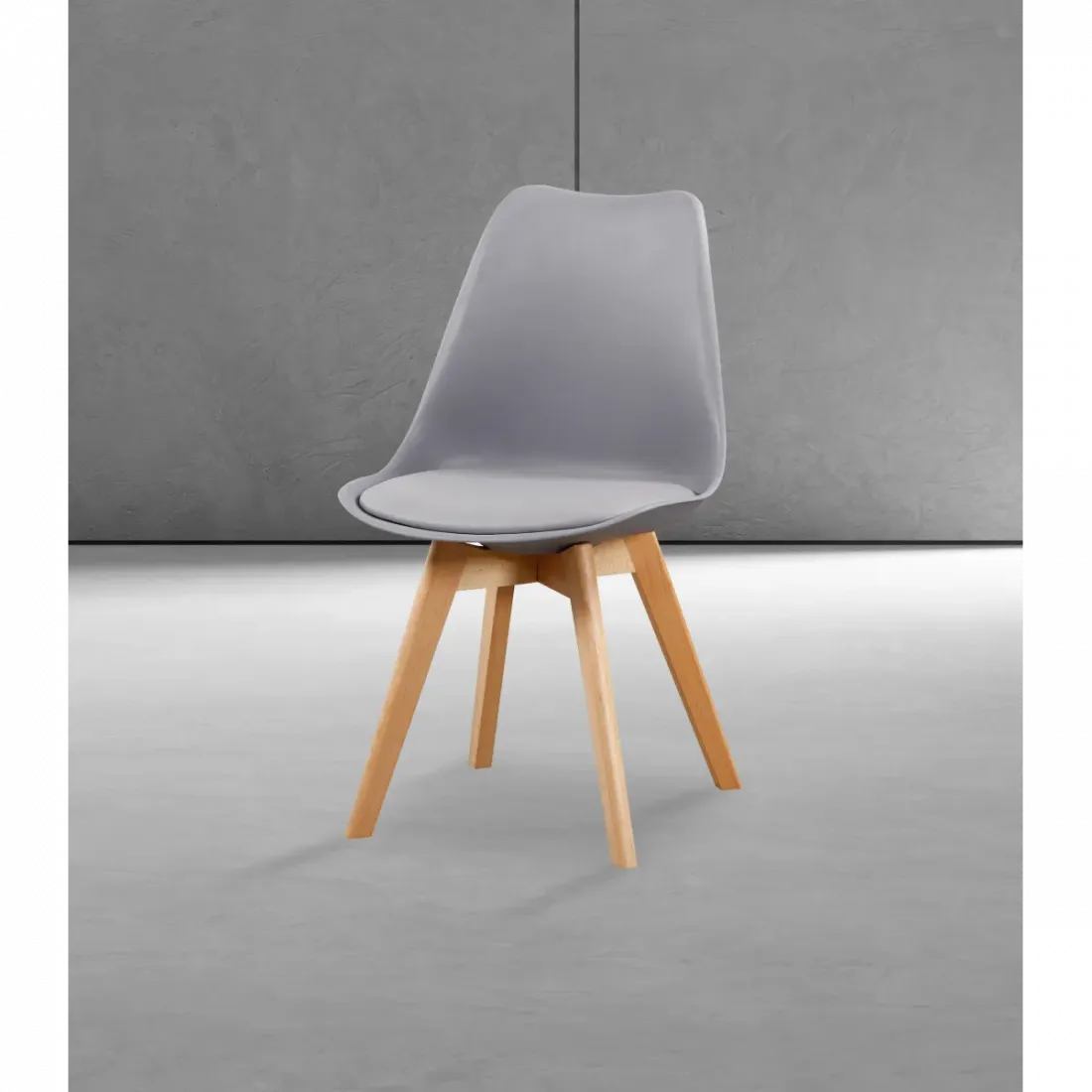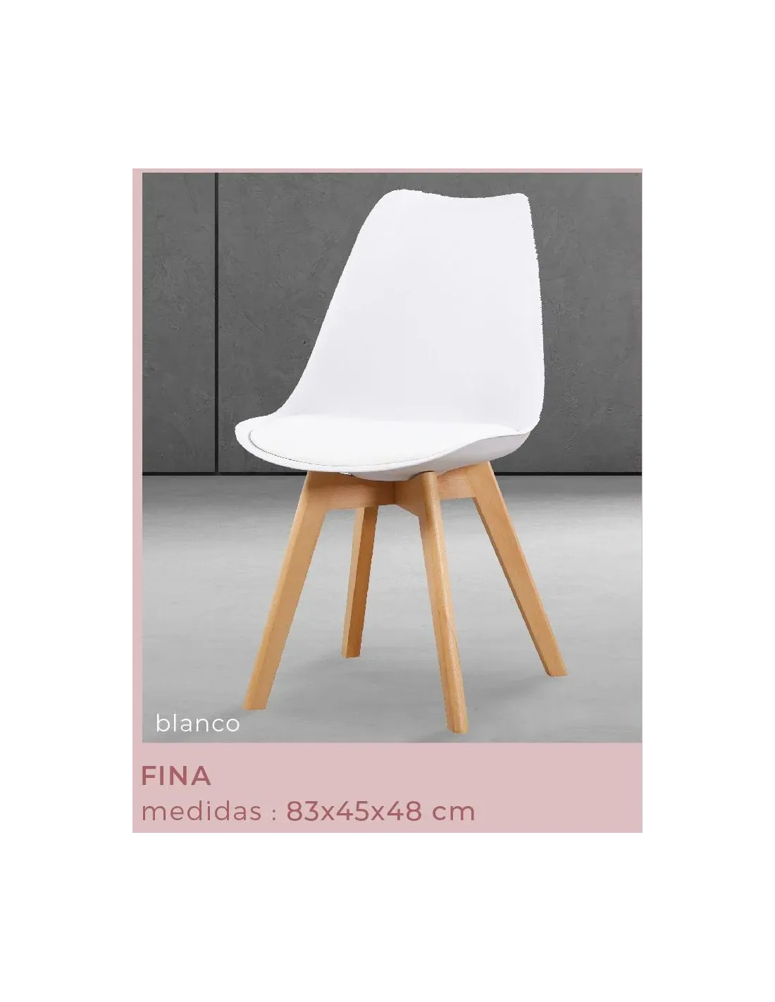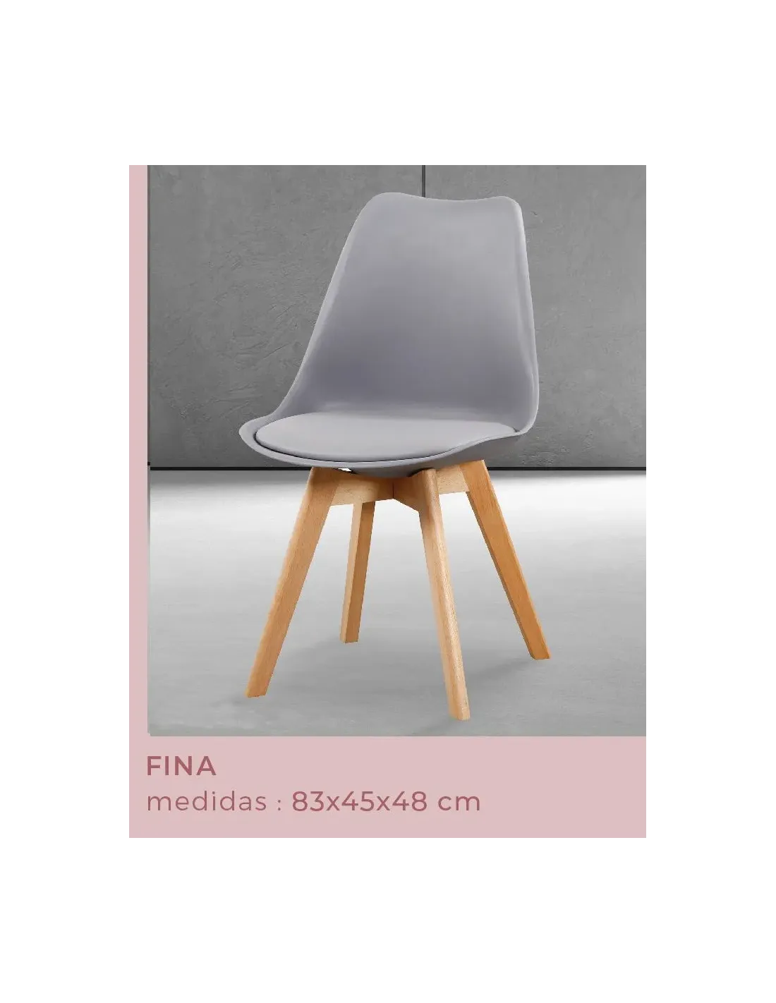 Juego 4 sillas Fina blanco o gris pata madera natural