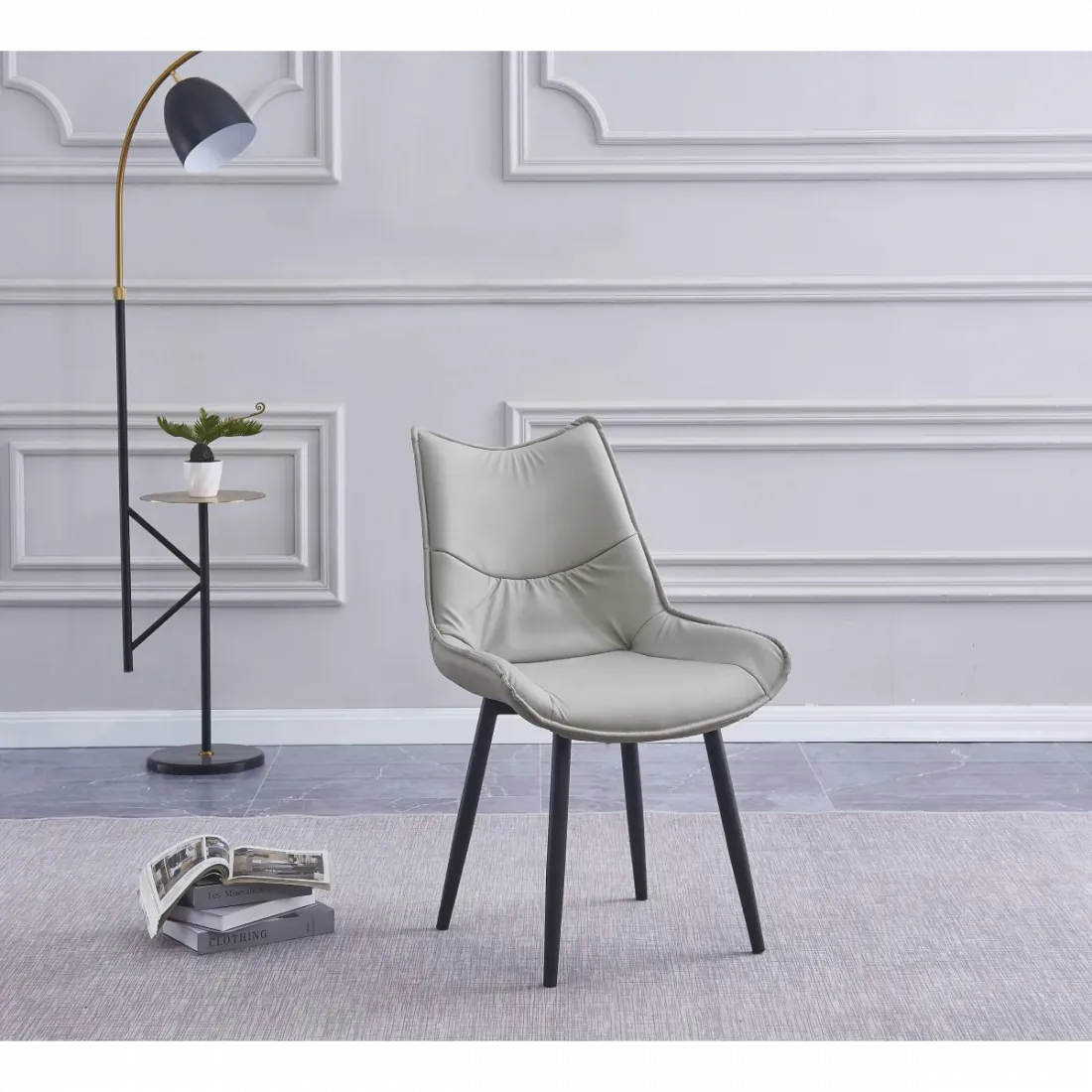 La silla KARINA destaca por su estilo nórdico-moderno, equilibrando simplicidad y sofisticación.