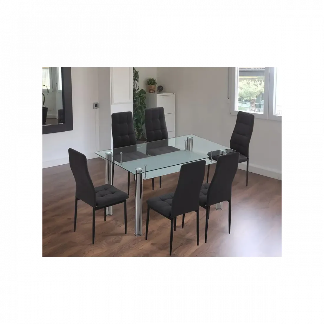 JUEGO DE 6 SILLAS TAP. TELA PATA NEGRA ZUNI GRIS en Relax Muebles