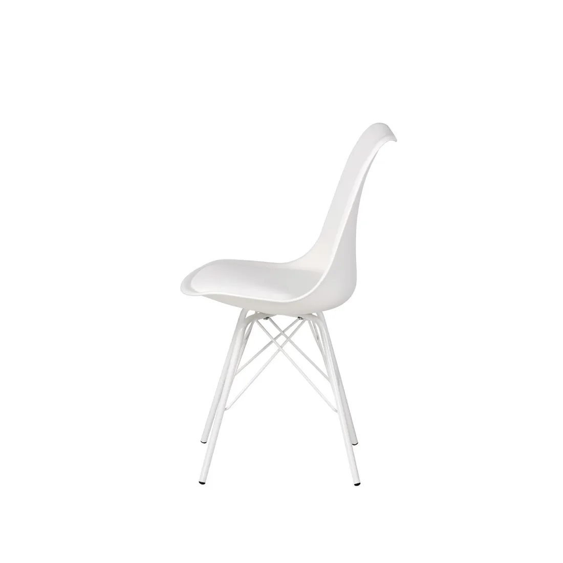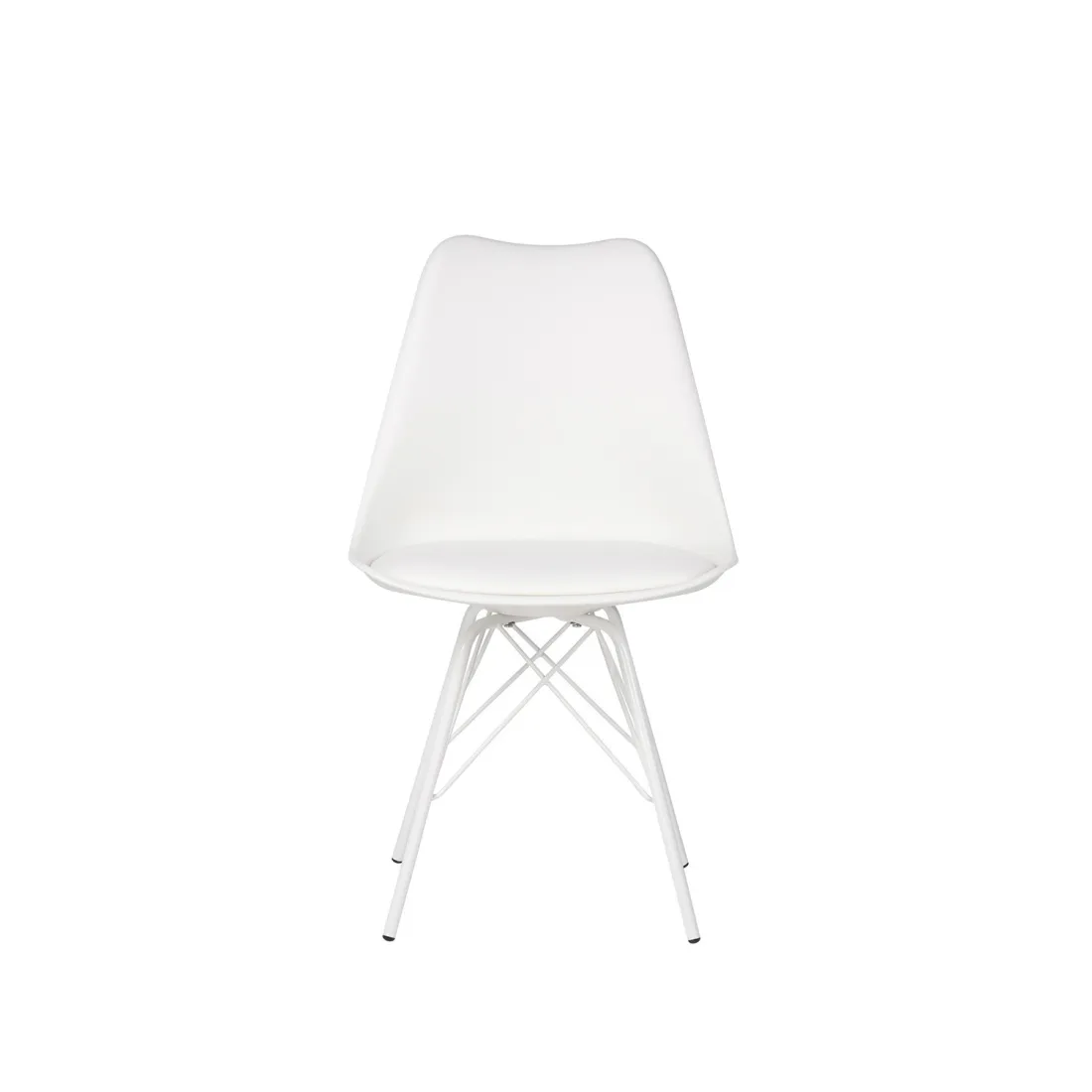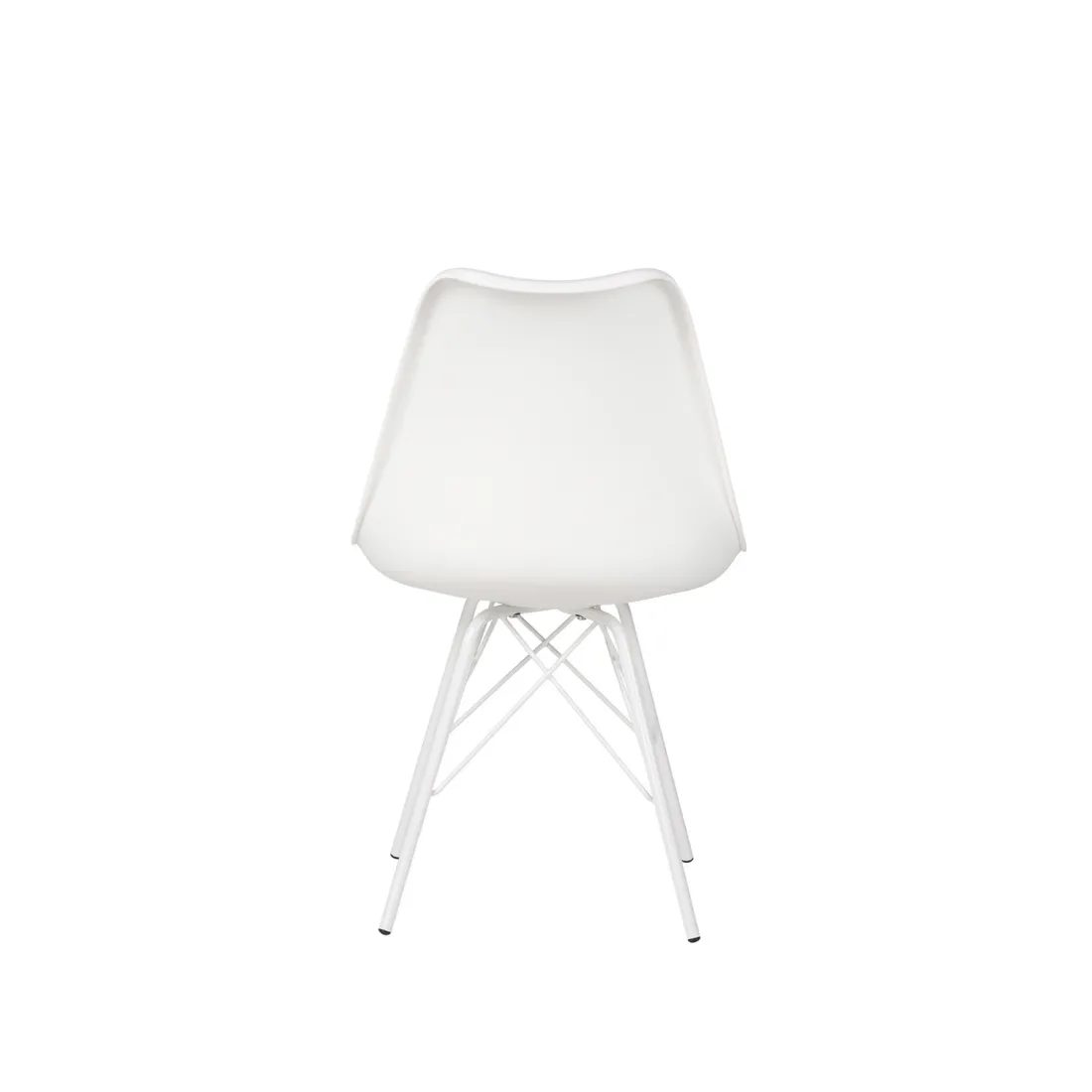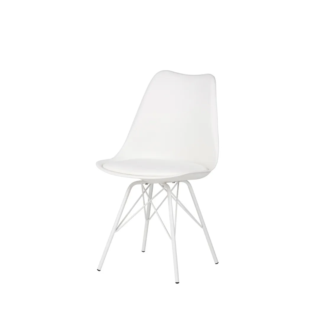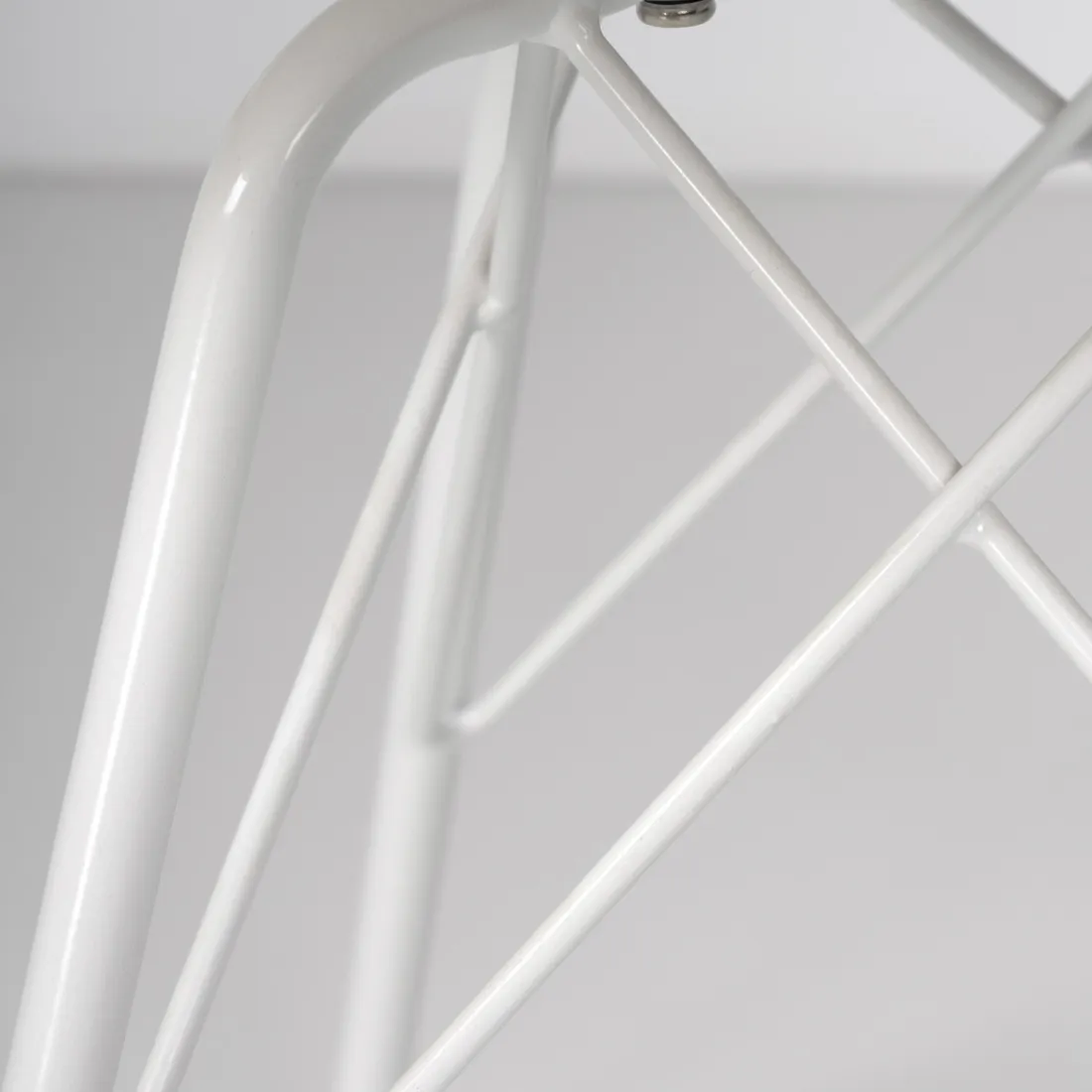 Las patas de metal, con una estructura entrecruzada, no solo añaden estabilidad, sino que también realzan el diseño minimalista de la silla.