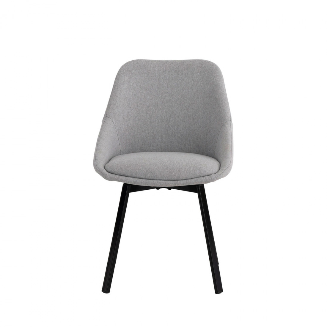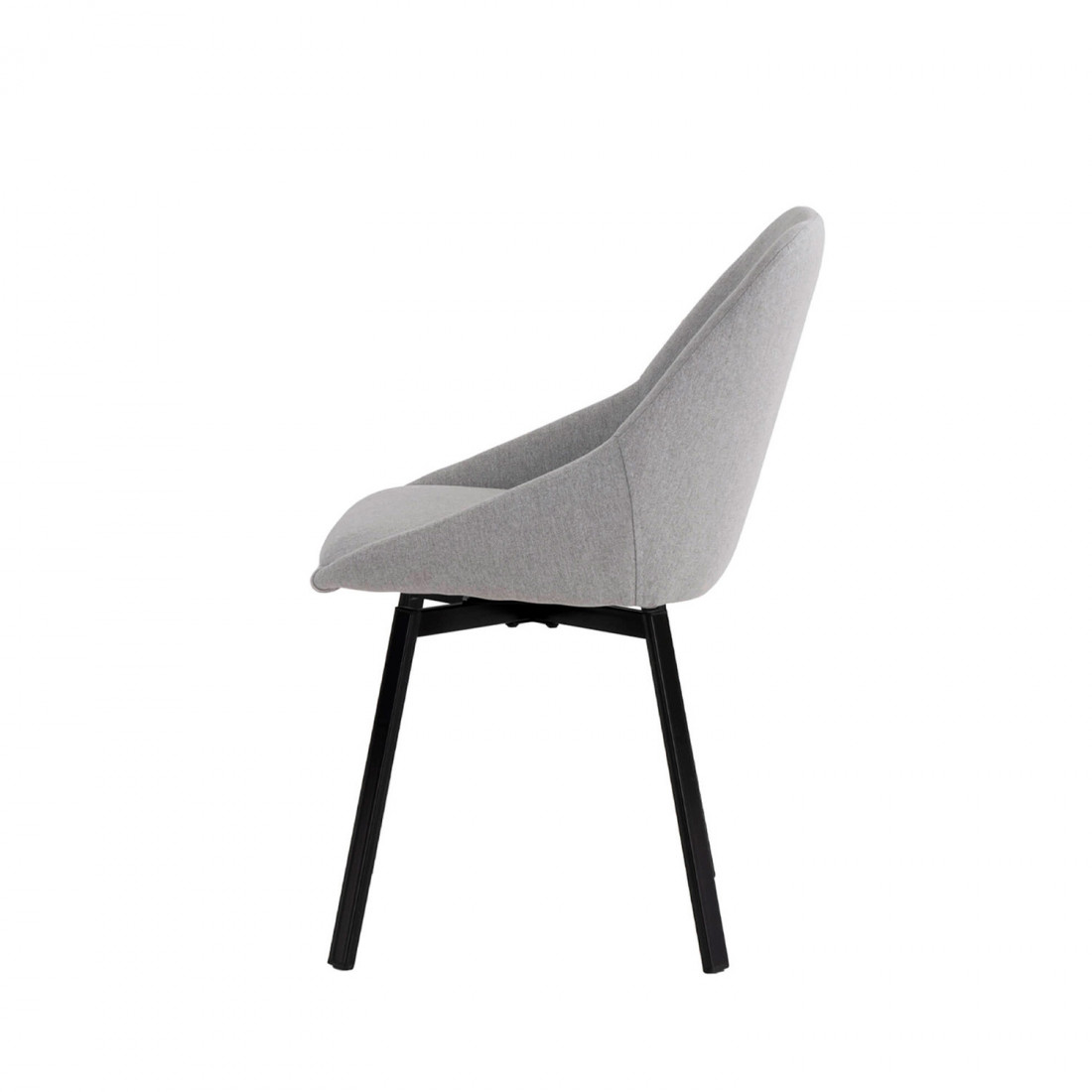 Esta silla cuenta con un mecanismo de giro de 180º con retorno automático, lo que la hace ideal para espacios dinámicos. Su respaldo curvado y asiento acolchado están tapizados en tejido 100% poliéster de color gris claro, aportando un toque de sofisticación y versatilidad a cualquier ambiente moderno.