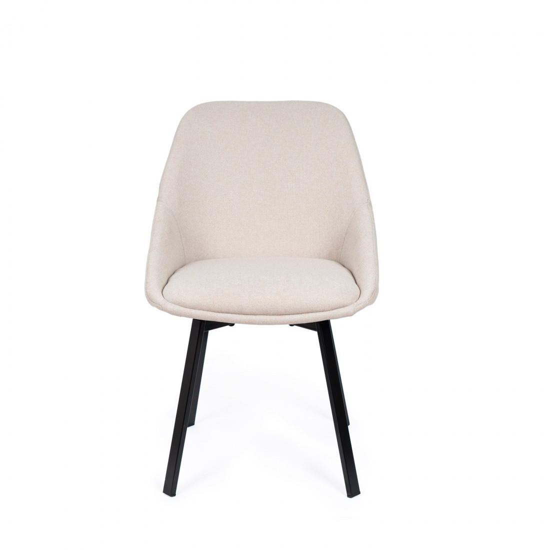 Su respaldo curvado y asiento acolchado, tapizado en color beige, ofrece comodidad y durabilidad.