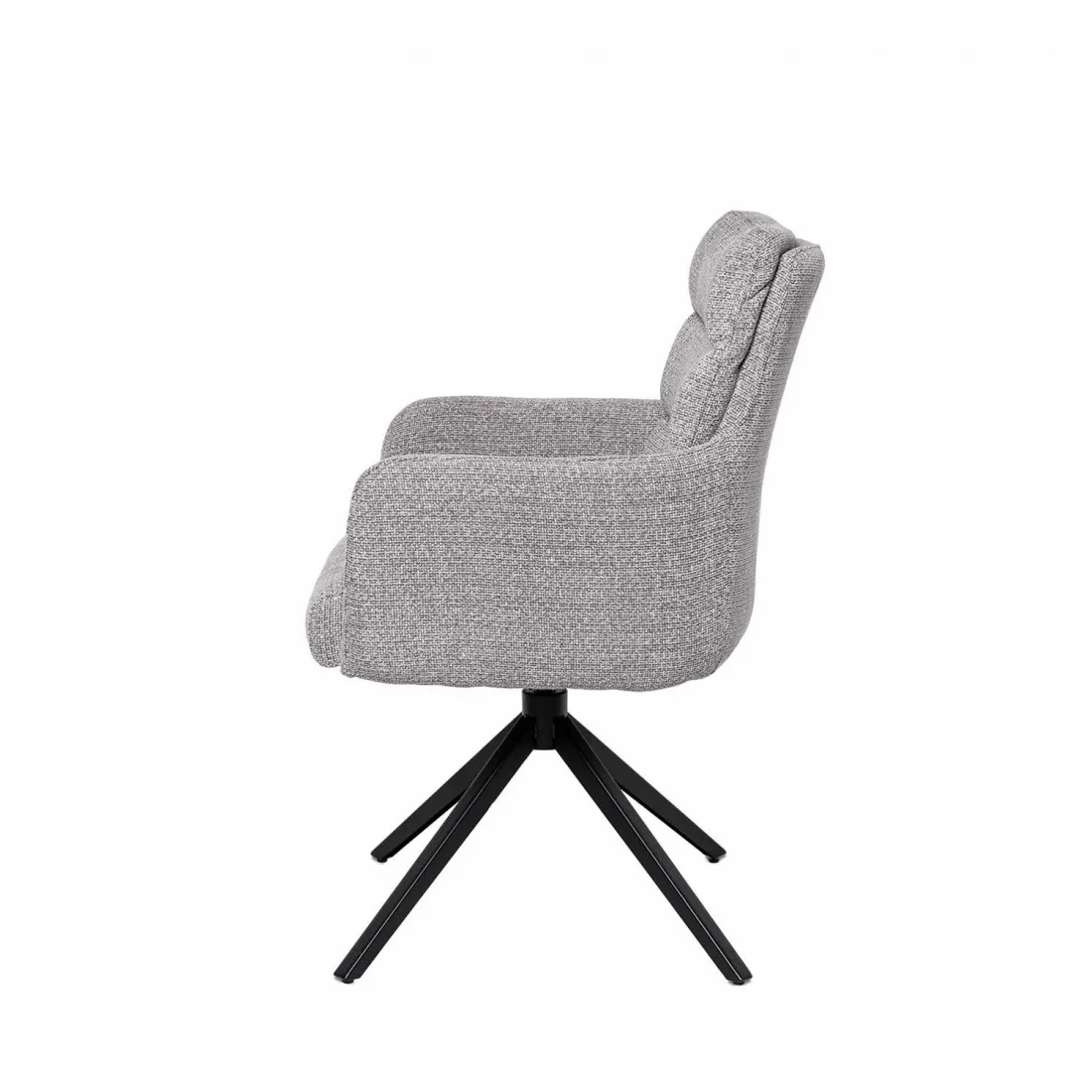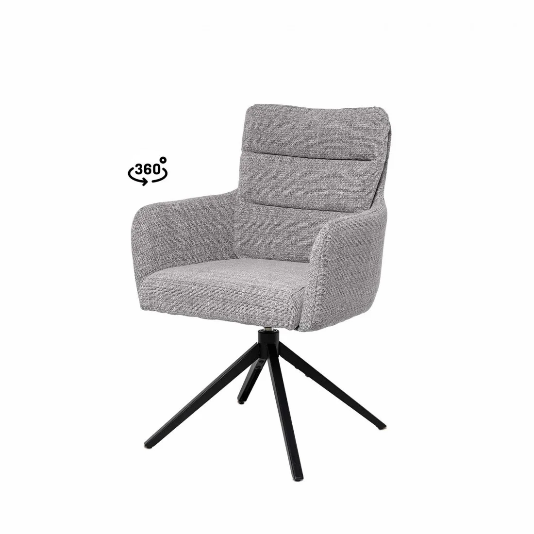 Su diseño ergonómico, con líneas depuradas y un perfil elegante, la convierte en una pieza perfecta para salones, comedores y oficinas que buscan un equilibrio entre sofisticación y comodidad. Además, incorpora un práctico mecanismo de giro de 360º con retorno automático, ideal para facilitar el movimiento sin perder la orientación inicial.