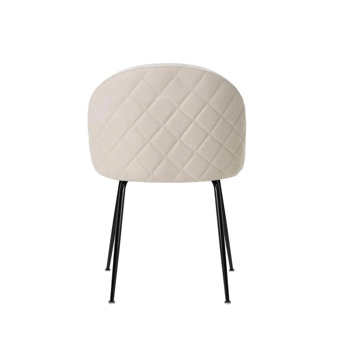 La silla LAILA tiene un diseño elegante y minimalista, ideal para cualquier espacio contemporáneo. Tapizada en un suave tejido beige, ofrece un respaldo y asiento cómodos y ergonómicos. La silla cuenta con cuatro patas metálicas negras que se inclinan ligeramente hacia afuera, proporcionando estabilidad y un toque de sofisticación.