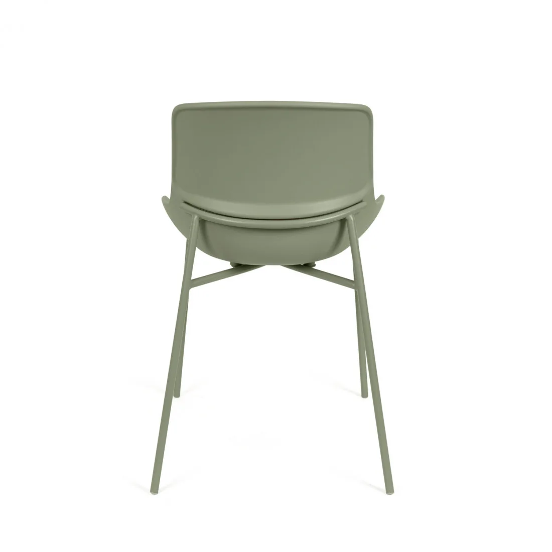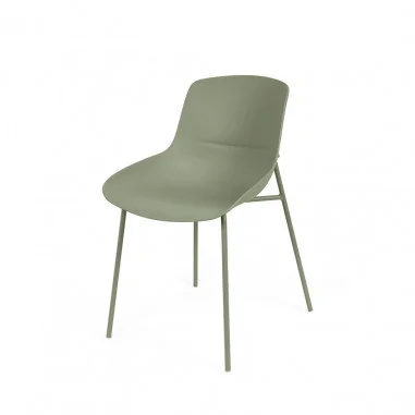 Su asiento de polipropileno, suavemente curvado, abraza el cuerpo con naturalidad mientras que sus patas metálicas, esbeltas y firmes, aportan un aire moderno y funcional.