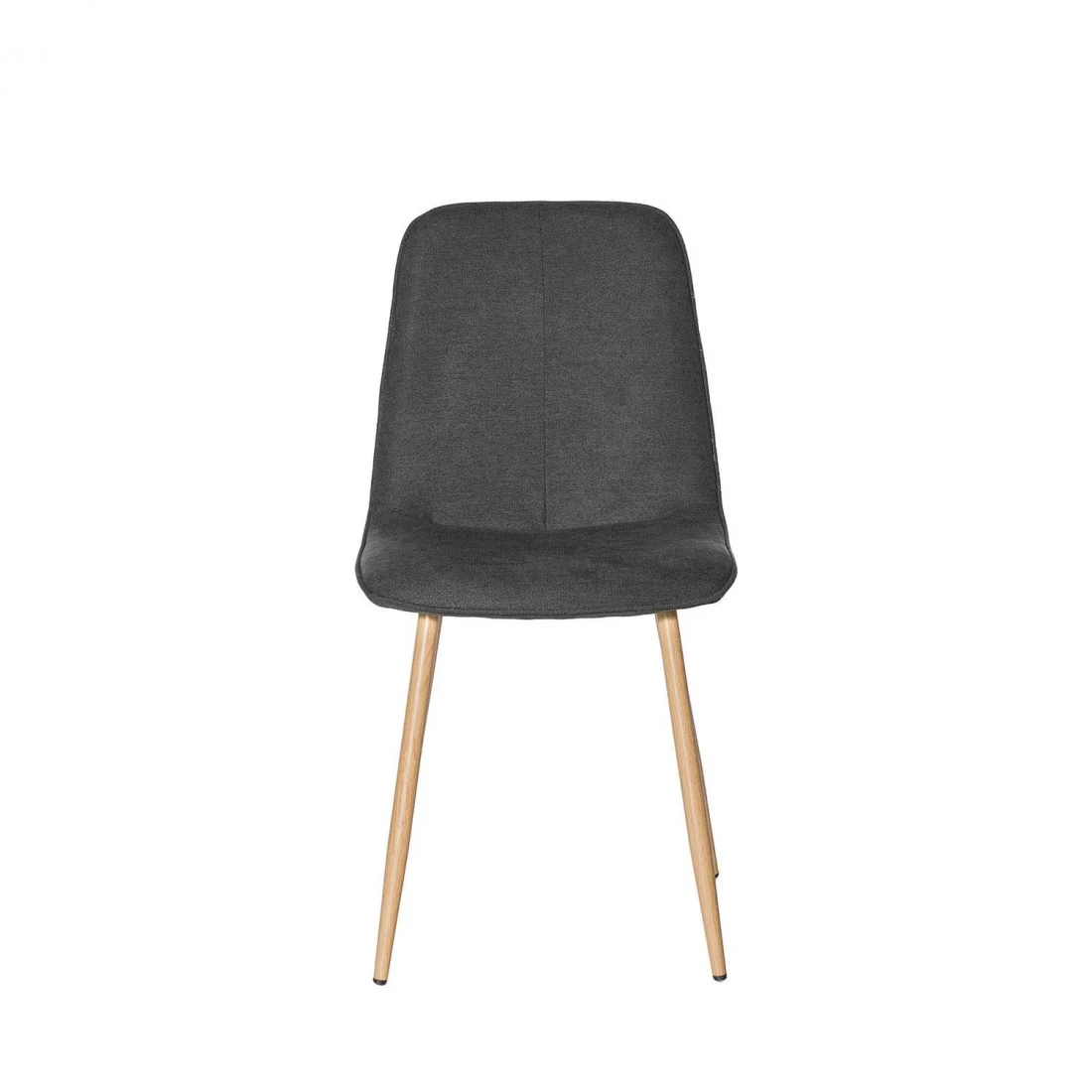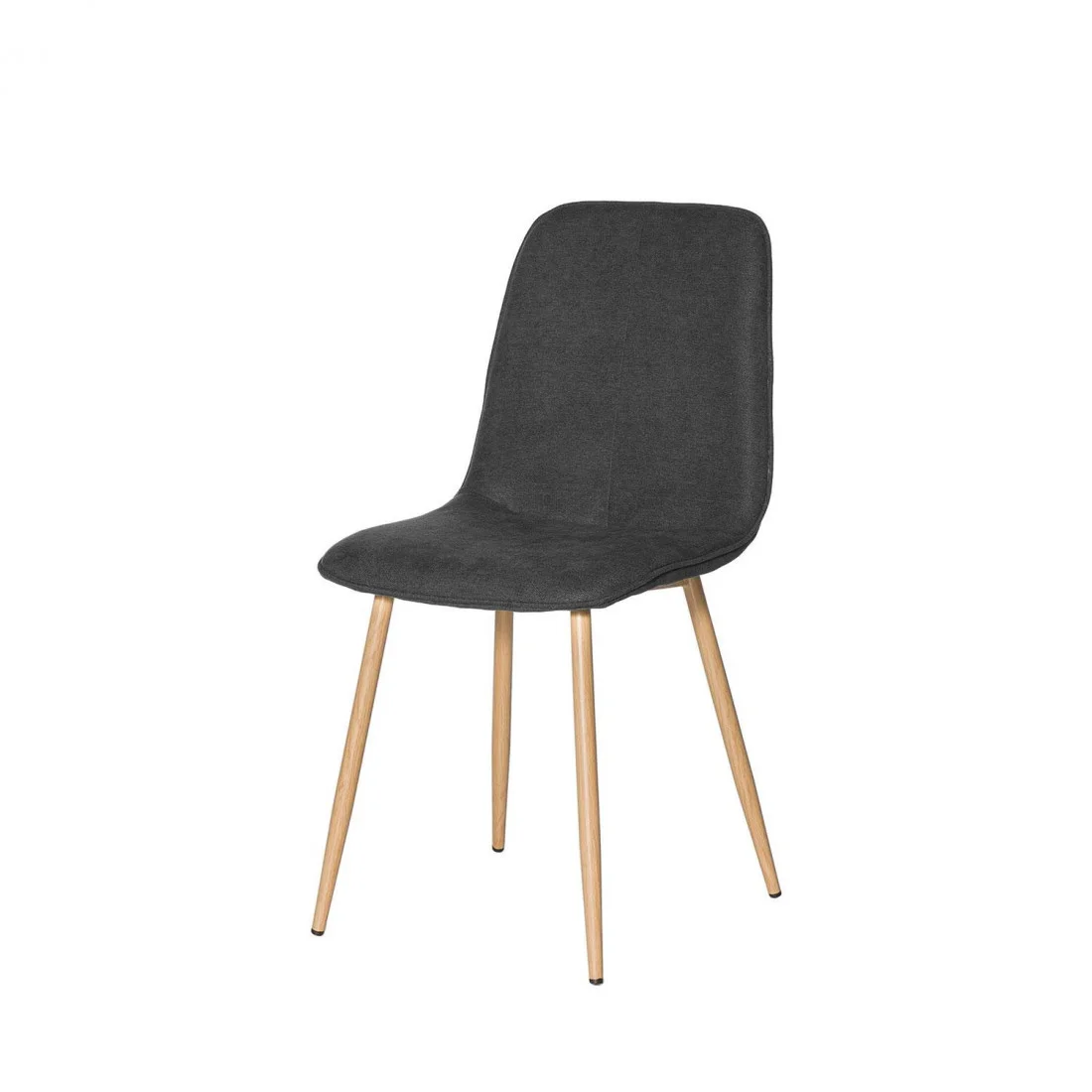 Tapizada en tejido 100% poliéster de color gris oscuro, su combinación con las patas de metal con efecto madera aporta un aire natural y sofisticado a cualquier estancia.