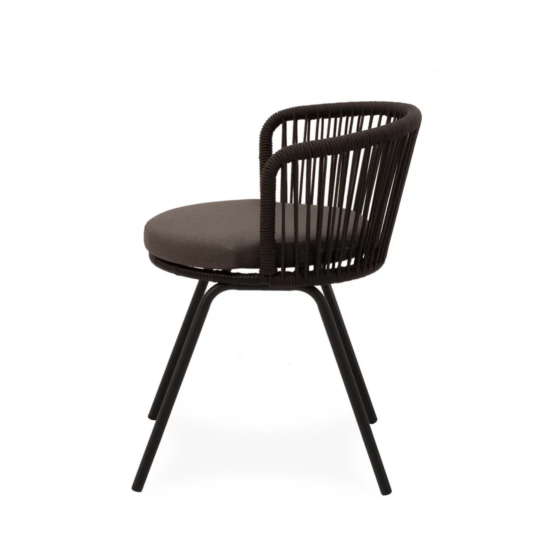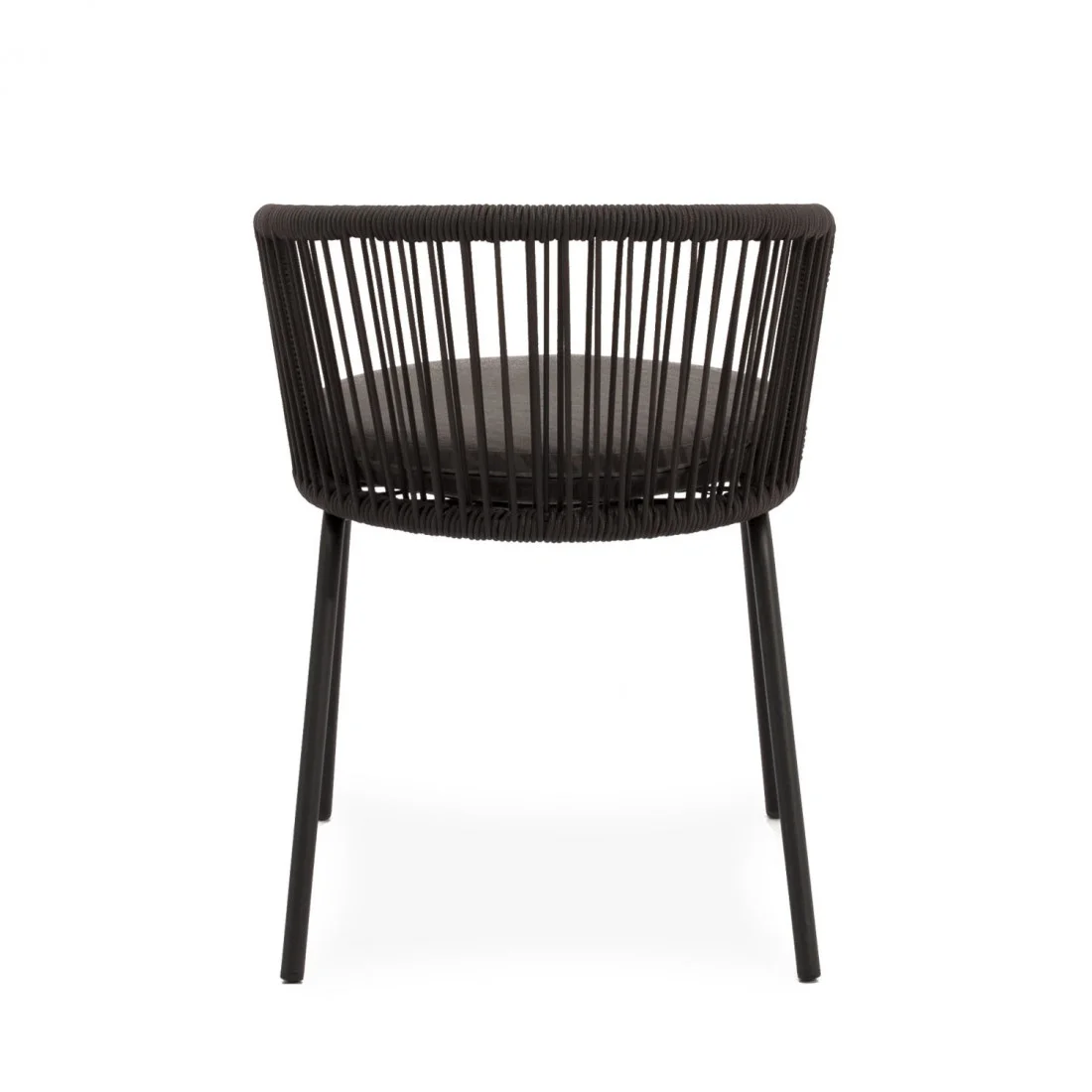 Las patas, fabricadas en acero tratado para uso en exteriores con alta resistencia, brindan una base sólida y estable, manteniendo el diseño elegante y minimalista. La estructura ergonómica garantiza una experiencia de asiento cómoda, ideal tanto para largas sobremesas como para momentos de relax al aire libre.