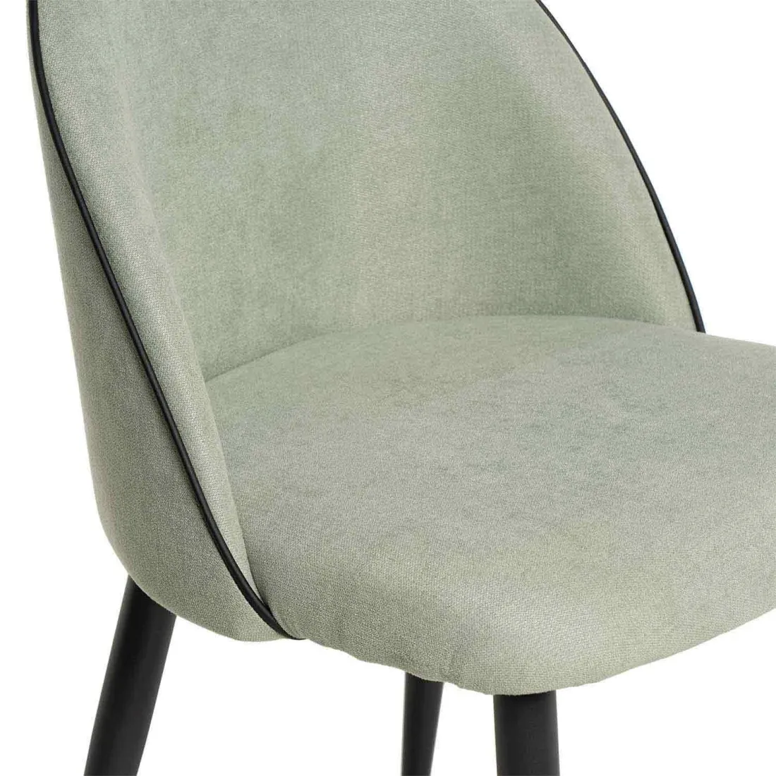 Por otro lado, su diseño simple y atractivo se realza con la línea negra de la costura del respaldo, que define su estructura, y las patas metálicas negras que contrastan elegantemente con el resto del diseño minimalista.