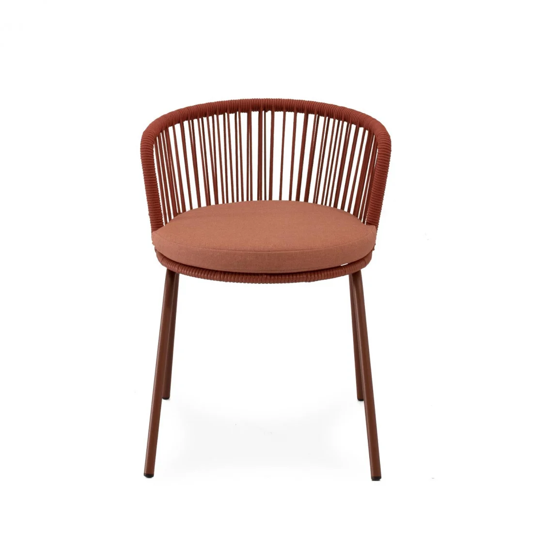 Las patas, fabricadas en acero tratado para uso en exteriores con alta resistencia, brindan una base sólida y estable, manteniendo el diseño elegante y minimalista. La estructura ergonómica garantiza una experiencia de asiento cómoda, ideal tanto para largas sobremesas como para momentos de relax al aire libre.