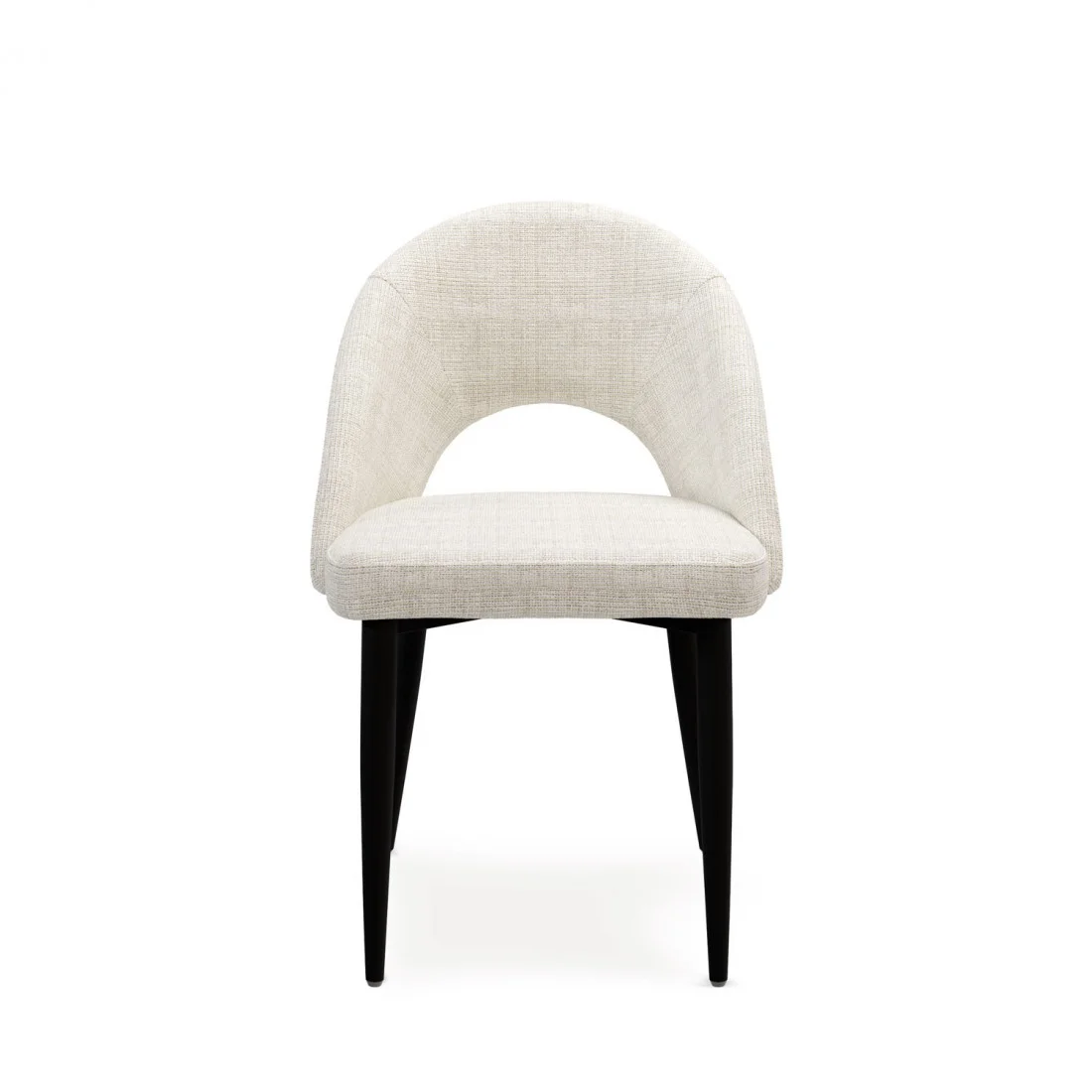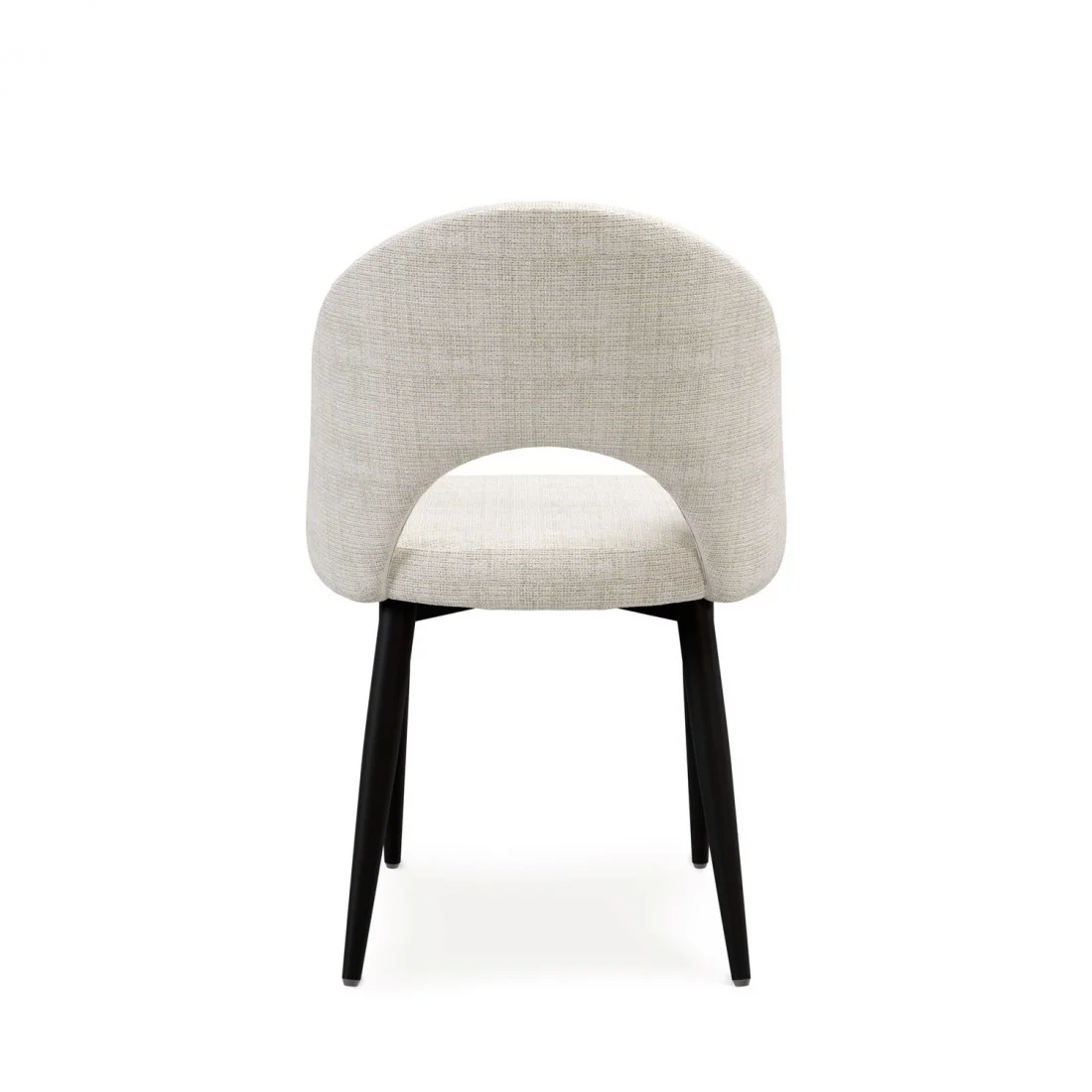El elemento más llamativo es, sin duda, la apertura curvilínea en el respaldo, que añade un toque distintivo y sofisticado al diseño general.