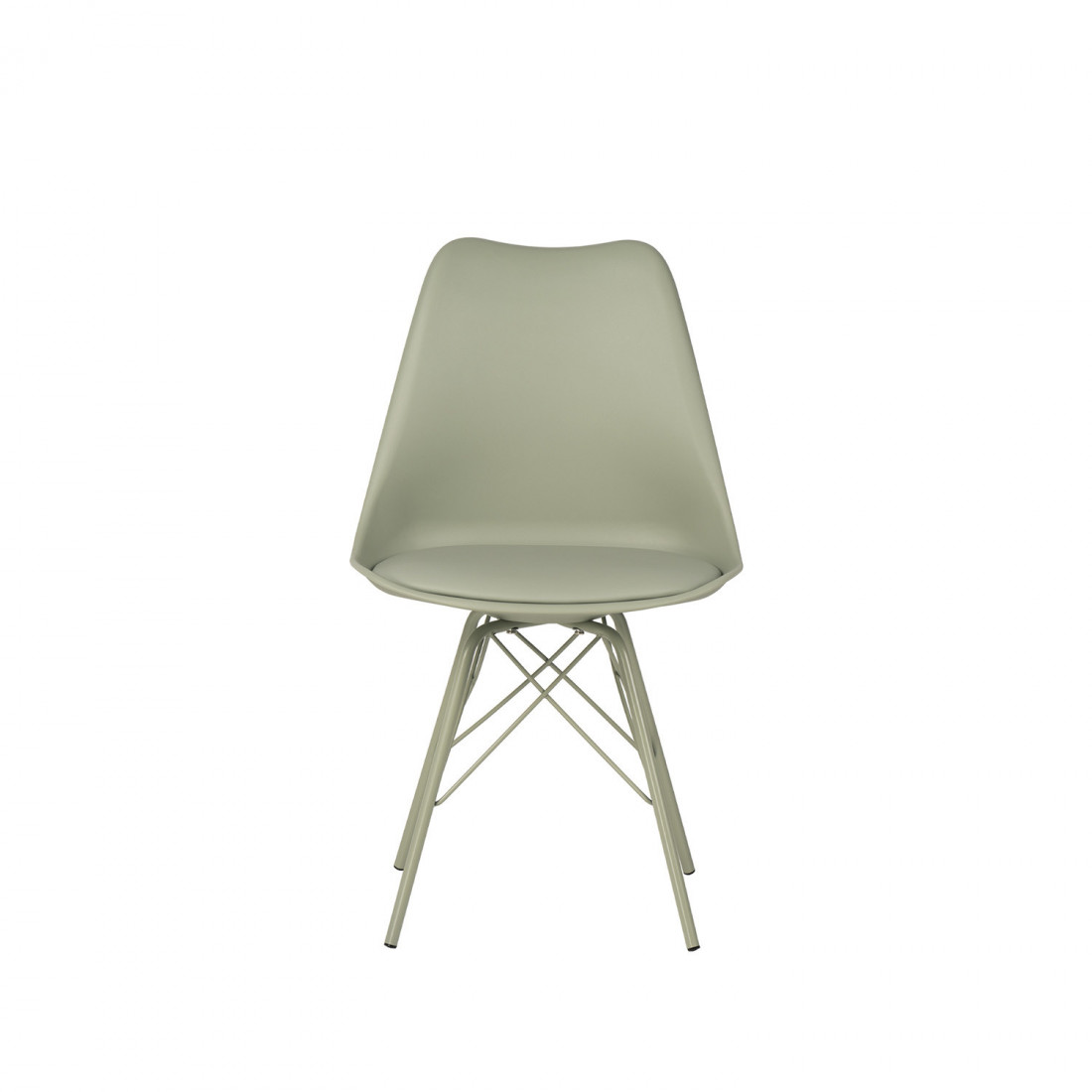Las patas de metal, con una estructura entrecruzada, no solo añaden estabilidad, sino que también realzan el diseño minimalista de la silla.