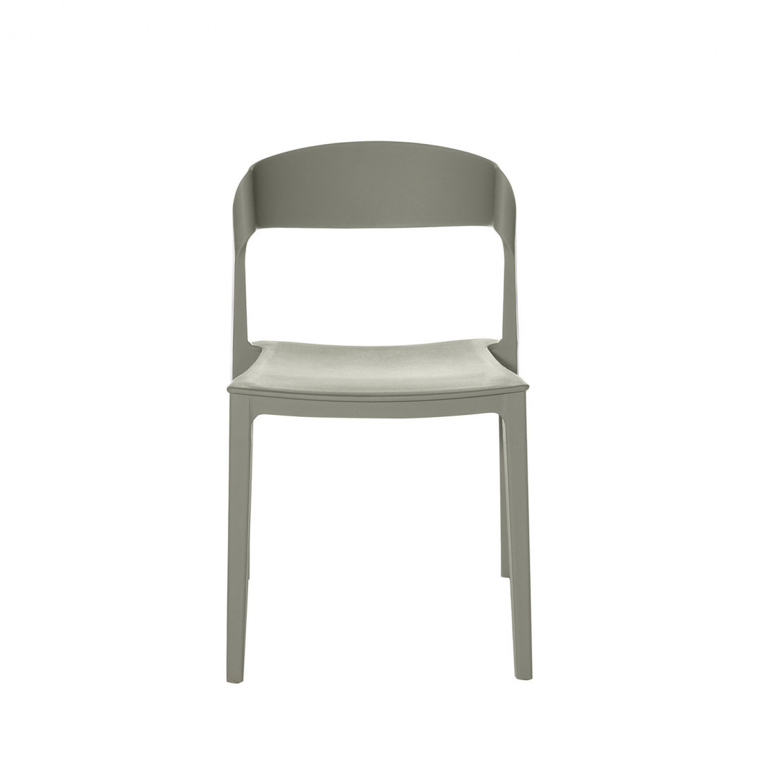 Su estructura de líneas suaves y curvadas está diseñada para ofrecer mayor comodidad ergonómica. Las patas, también en polipropileno, aportan estabilidad sin comprometer su aspecto ligero y estilizado.