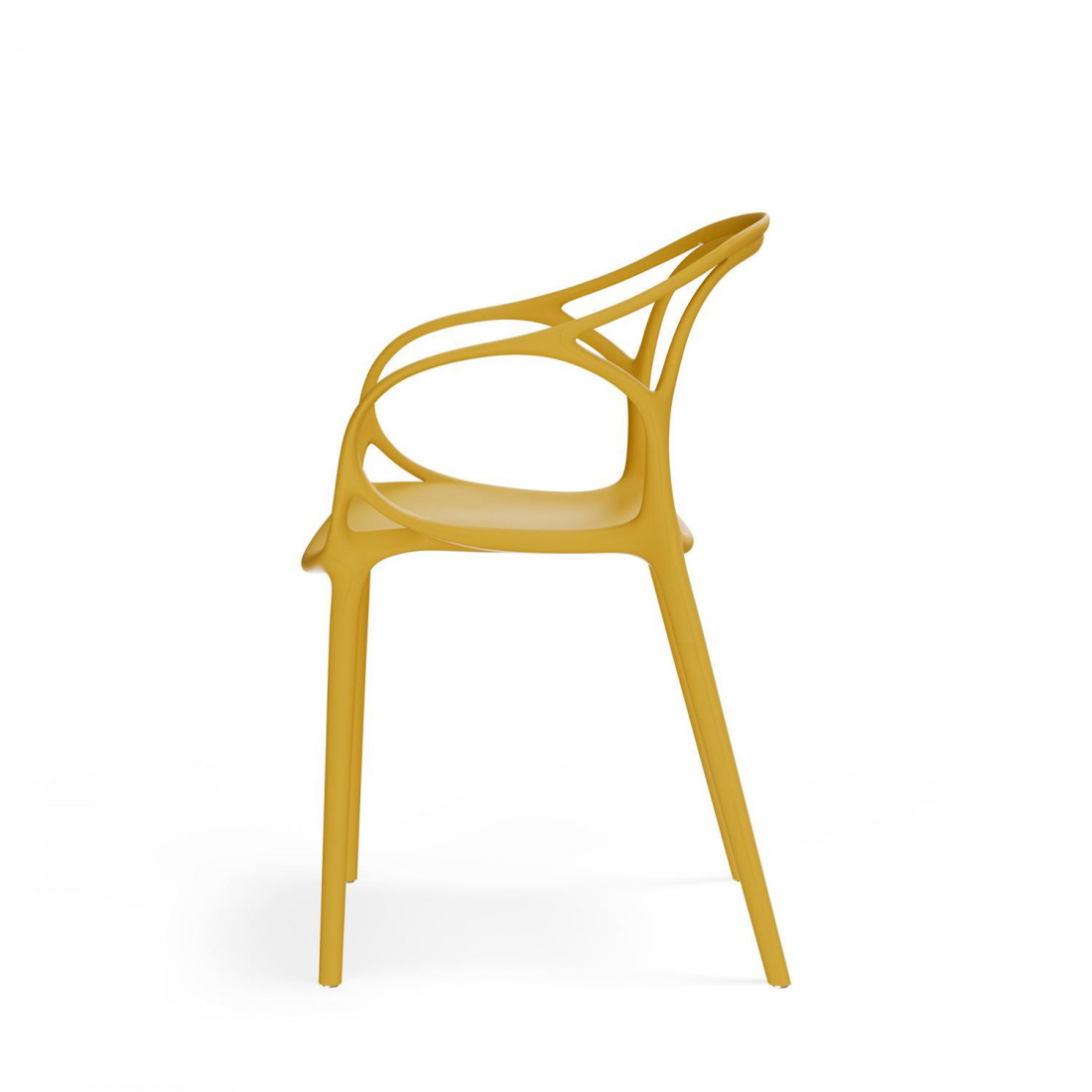 Taburete compuesto por un asiento acolchado y respaldo de polipropileno cóncavo, diseñado para ofrecer comodidad en el uso diario.