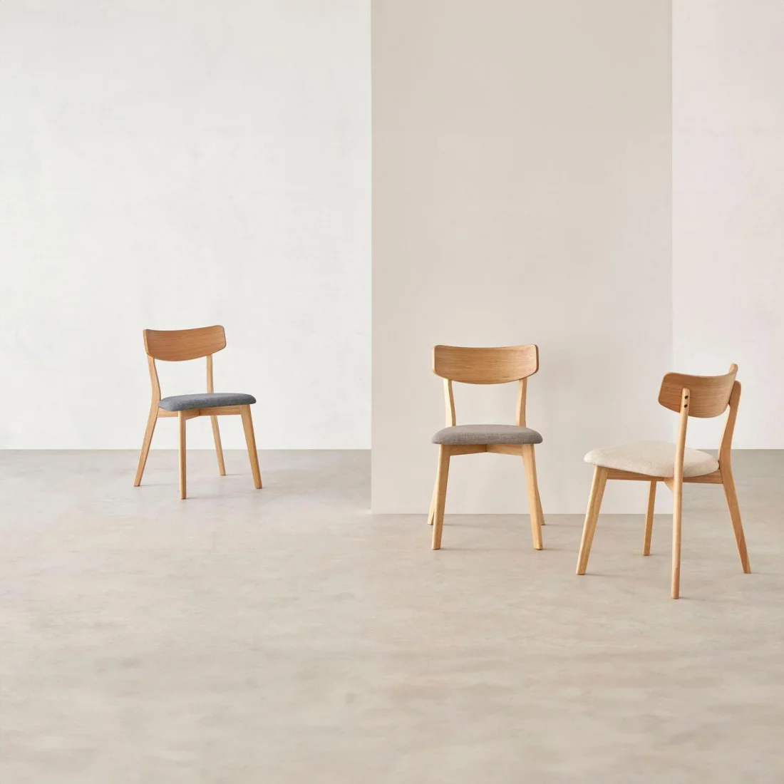 La silla KARINA destaca por su estilo nórdico-moderno, equilibrando simplicidad y sofisticación.