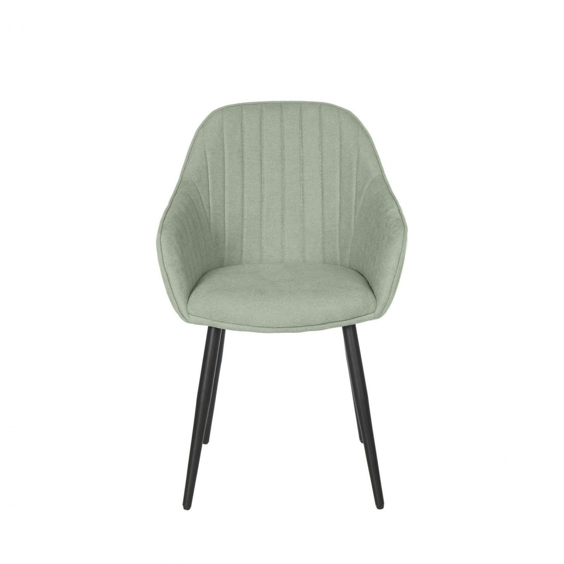 Su estructura acolchada con reposabrazos y respaldo alto, junto con su tejido en color menta con grabado en líneas verticales, le confiere un estilo elegante y sofisticado.