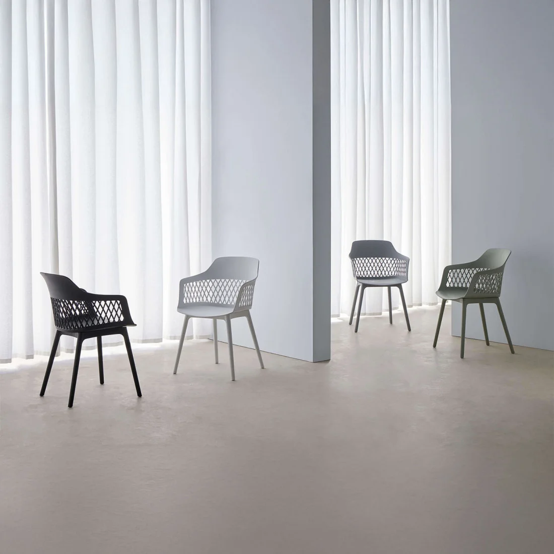 El respaldo enrejado le confiere a la silla JAYDEN un aspecto ligero. Además, su diseño ligeramente curvado proporciona un soporte óptimo para la espalda.