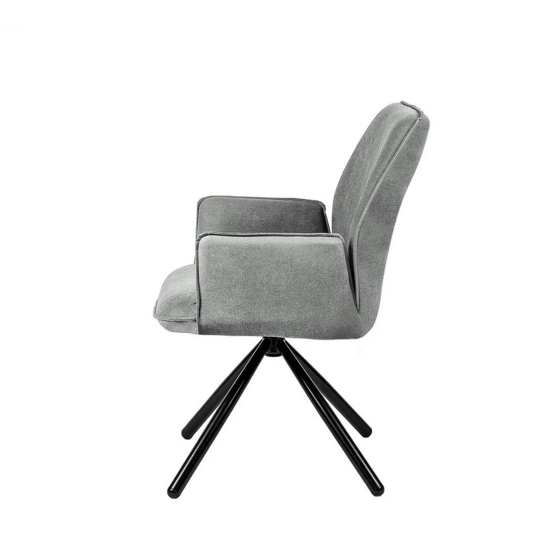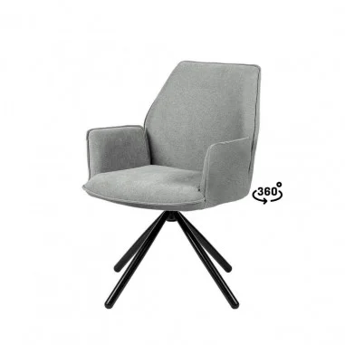 Cuenta con un respaldo alto y reposabrazos integrados, tapizado en un elegante tejido gris claro que aporta un estilo contemporáneo. El asiento está bien acolchado, garantizando comodidad.