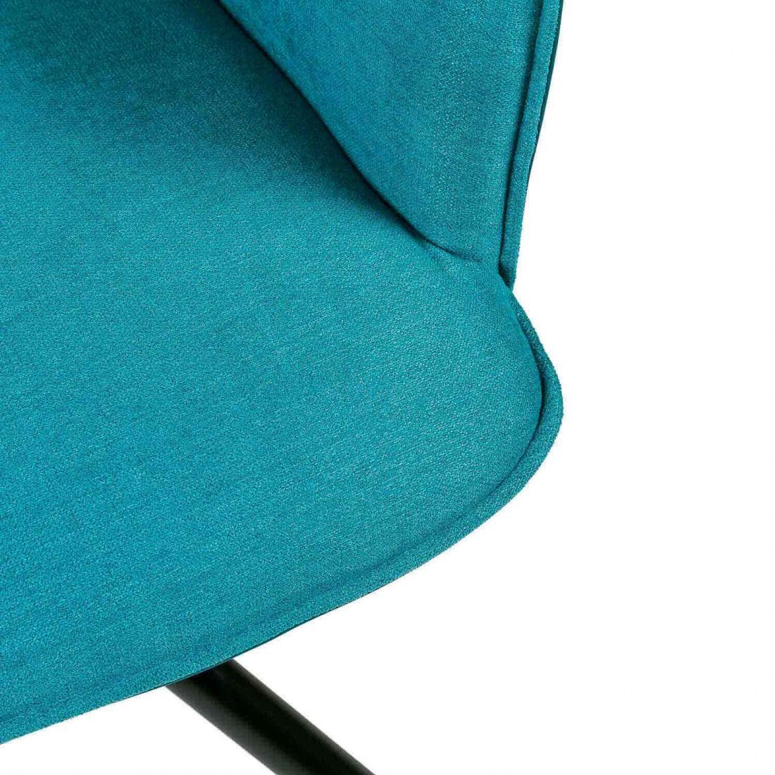 Cuenta con un respaldo alto y reposabrazos integrados, tapizado en un bonito tejido en color azul que aporta un estilo contemporáneo. El asiento está bien acolchado, garantizando comodidad.