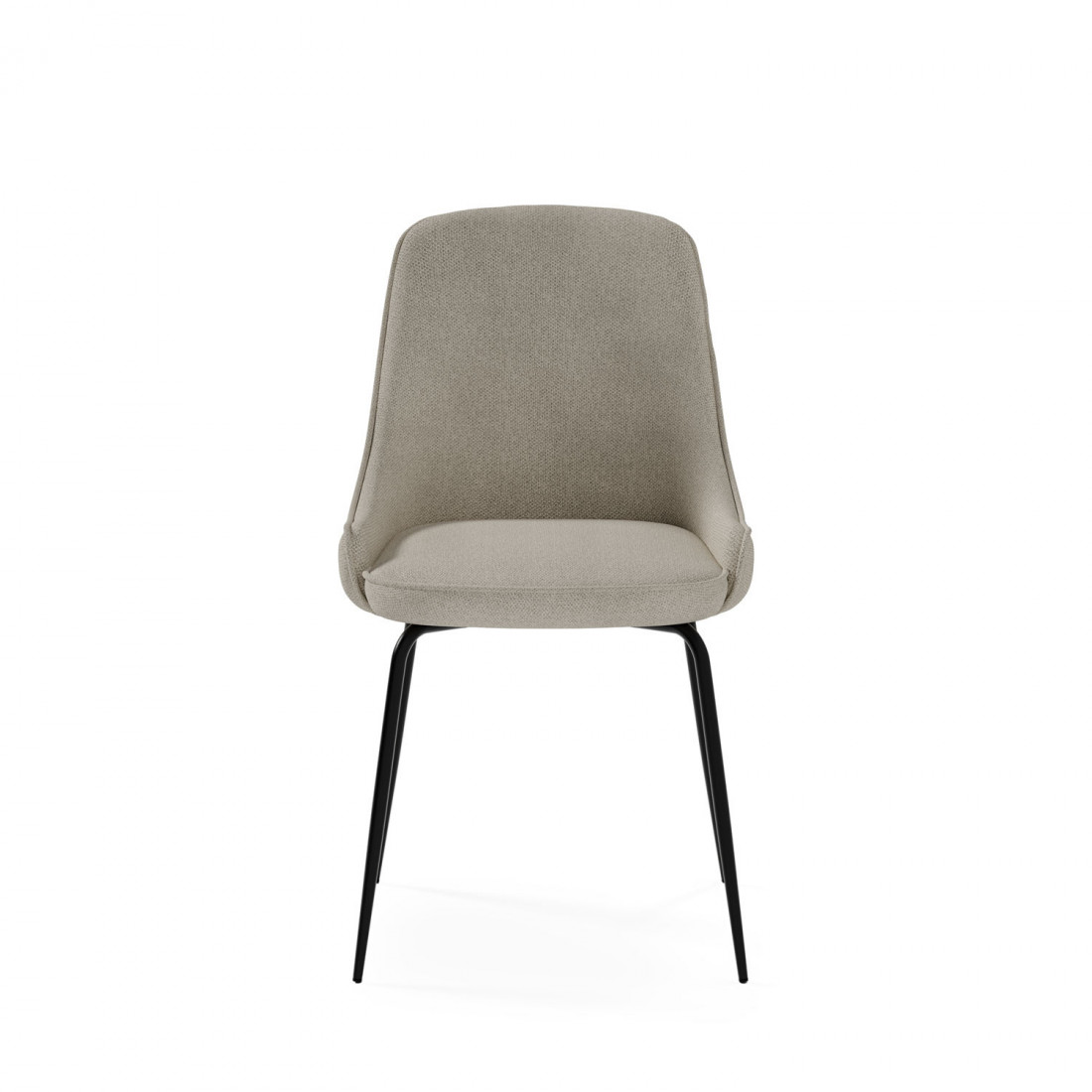 La silla LAILA tiene un diseño elegante y minimalista, ideal para cualquier espacio contemporáneo. Tapizada en un suave tejido beige, ofrece un respaldo y asiento cómodos y ergonómicos. La silla cuenta con cuatro patas metálicas negras que se inclinan ligeramente hacia afuera, proporcionando estabilidad y un toque de sofisticación.