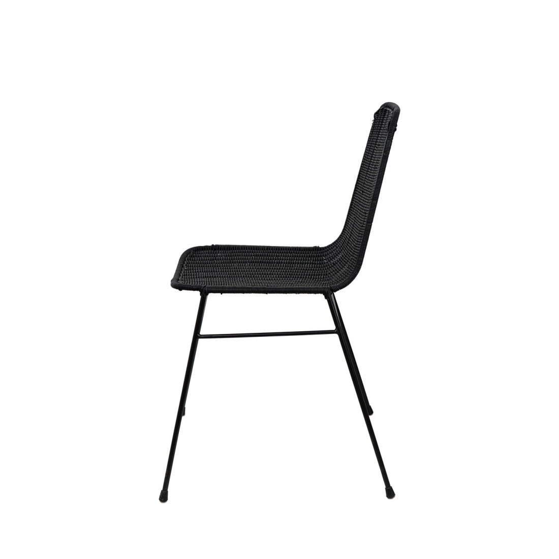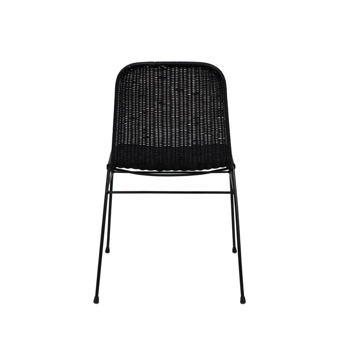 La silla COLETTE se distingue por su elegancia y diseño sofisticado, con un acabado completamente en negro que abarca tanto su estructura de ratán como sus resistentes patas de hierro. Su estética moderna y minimalista la convierte en una pieza versátil, capaz de integrarse armoniosamente en diversos espacios.