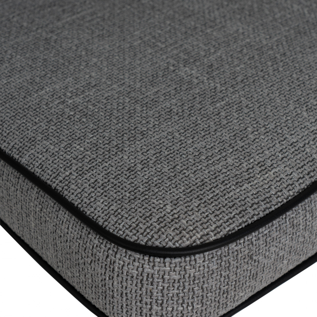 La silla de madera ANAIS está fabricada madera de hevea y tapizada en tela de color gris oscuro (100% poliéster) en su respaldo y asiento.