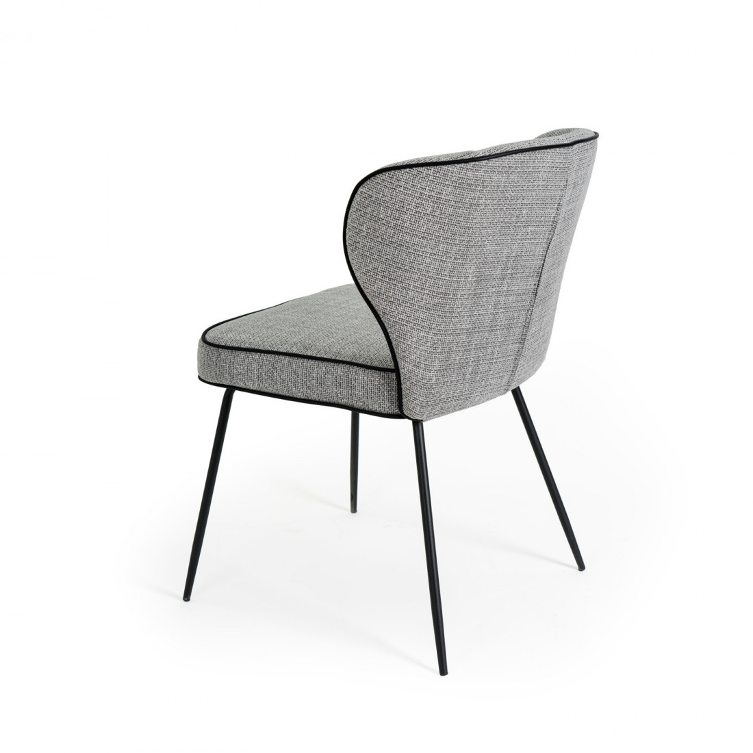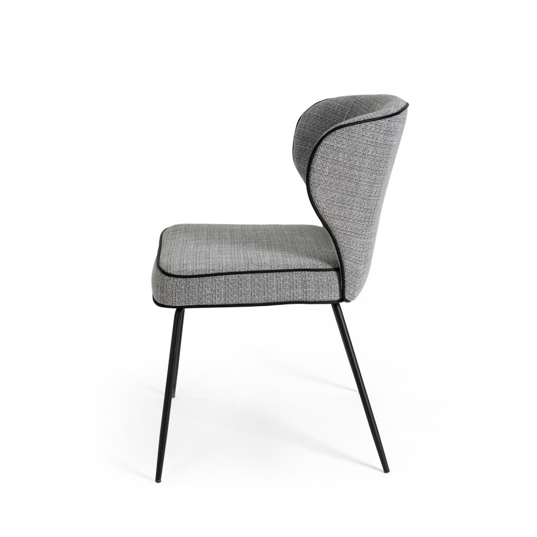 Su perfil elegante y líneas limpias se complementan con el tapizado en color gris claro, aportando un tono neutro y versátil, perfecto para combinar con diferentes estilos de decoración.