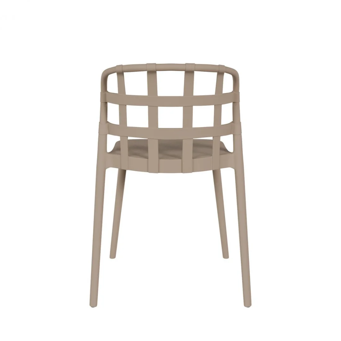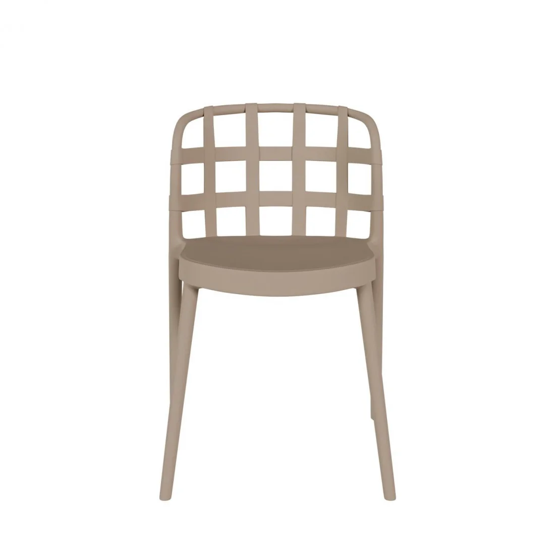 Su respaldo y brazos entrelazados en forma de rejilla crean un patrón geométrico que añade un toque distintivo a cualquier espacio.
