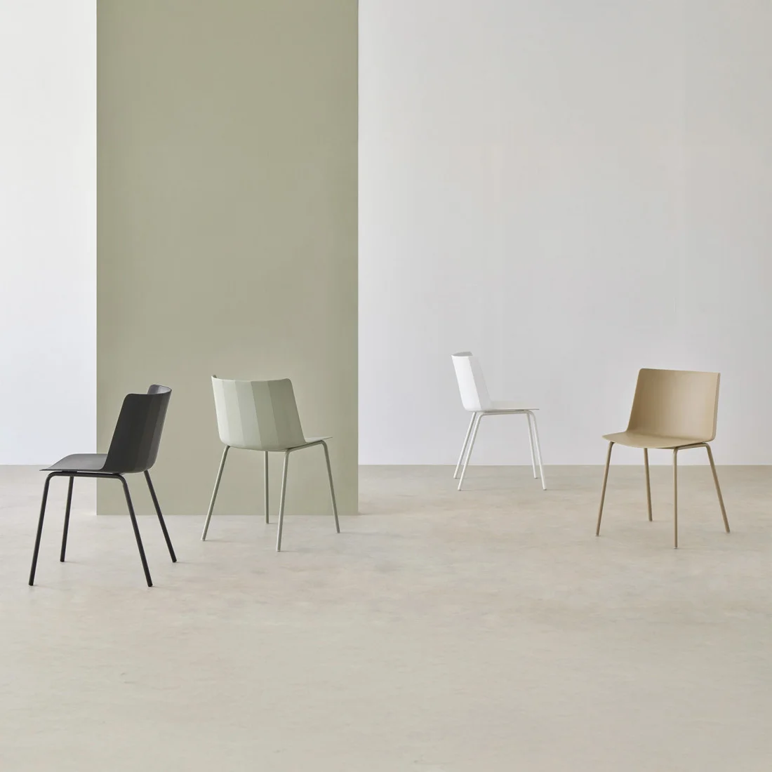 La silla CADY está fabricada en polipropileno resistente y patas de metal.