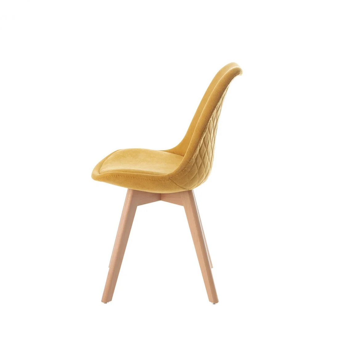 Esta pieza elegante combina un diseño minimalista con una simplicidad y elegancia inigualables. Su respaldo, tapizado en un elegante color mostaza con un grabado en forma de rombos en la parte trasera, y su asiento acolchado proporcionan una comodidad excepcional.