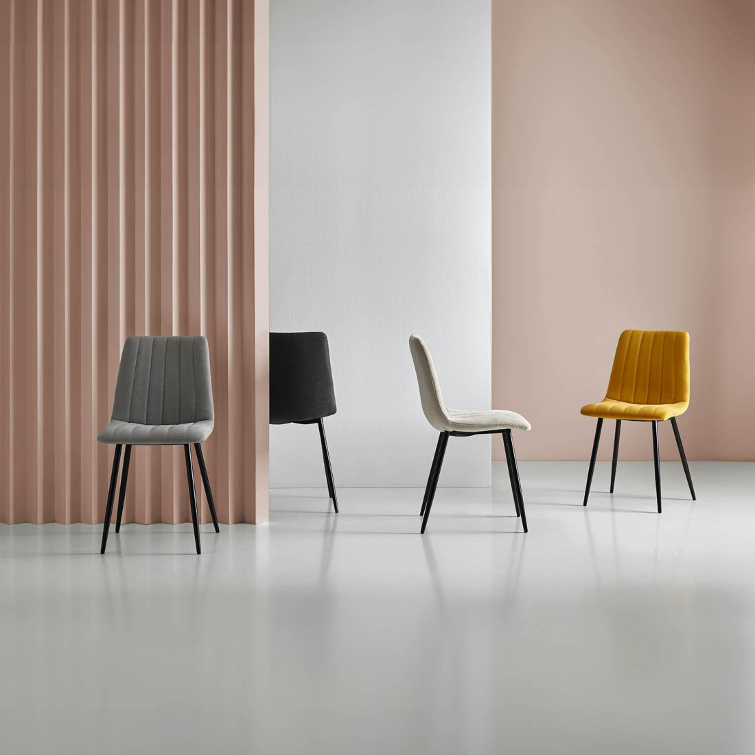 Las patas metálicas cónicas negras proporcionan un contraste elegante con el color del tapizado, además de garantizar estabilidad y durabilidad.