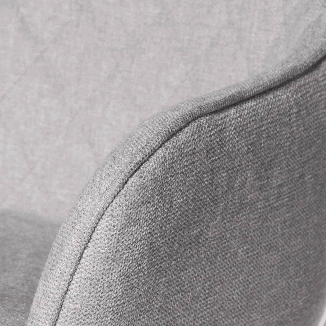 Tanto el asiento como el respaldo están acolchados y tapizados en un tejido gris oscuro, ofreciendo una combinación perfecta de confort y estilo.
