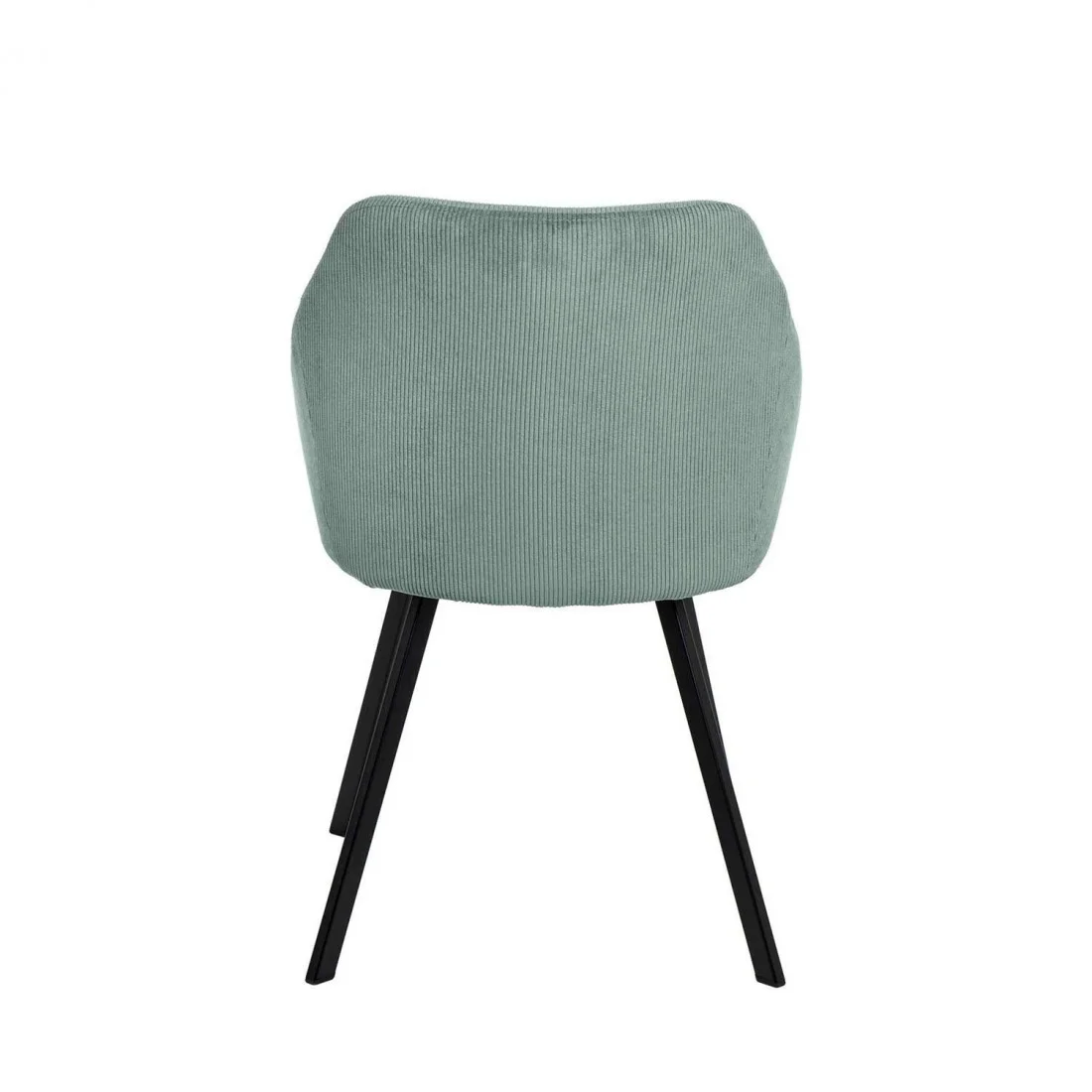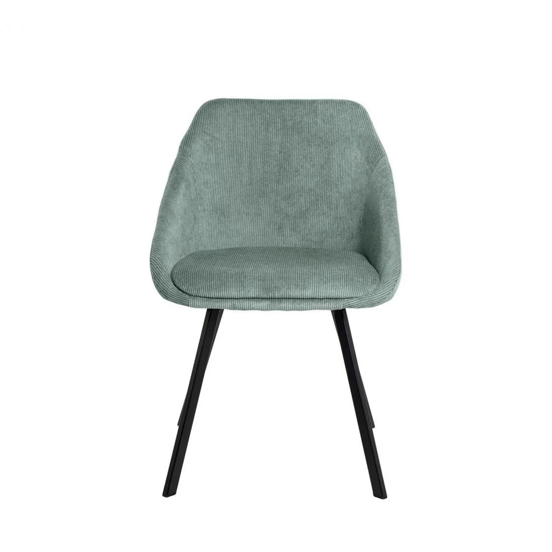 La silla MACIE está tapizada en un suave tejido de pana en color menta, es agradable al tacto y fácil de limpiar, lo que la hace perfecta para el uso diario.