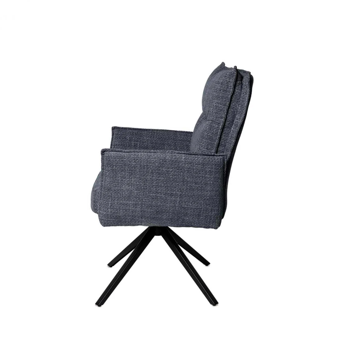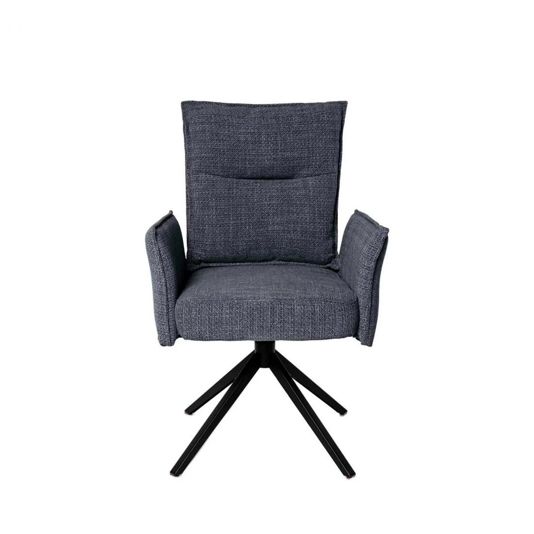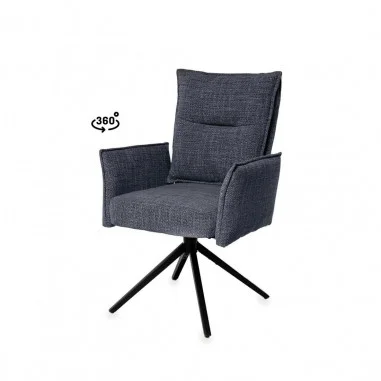 Su estructura está compuesta por patas metálicas en un elegante acabado negro, que armonizan a la perfección con el tapizado del respaldo, los reposabrazos y el asiento. Estos elementos han sido cuidadosamente acolchados, y su asiento está equipado con un sistema de muelles ensacados, lo que asegura un nivel superior de confort y soporte.