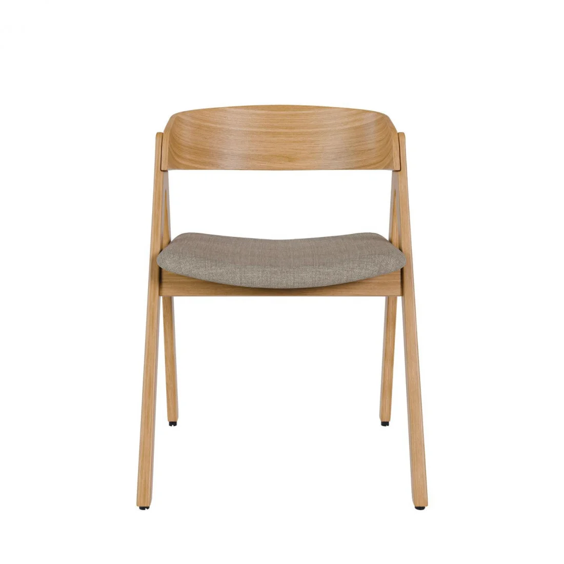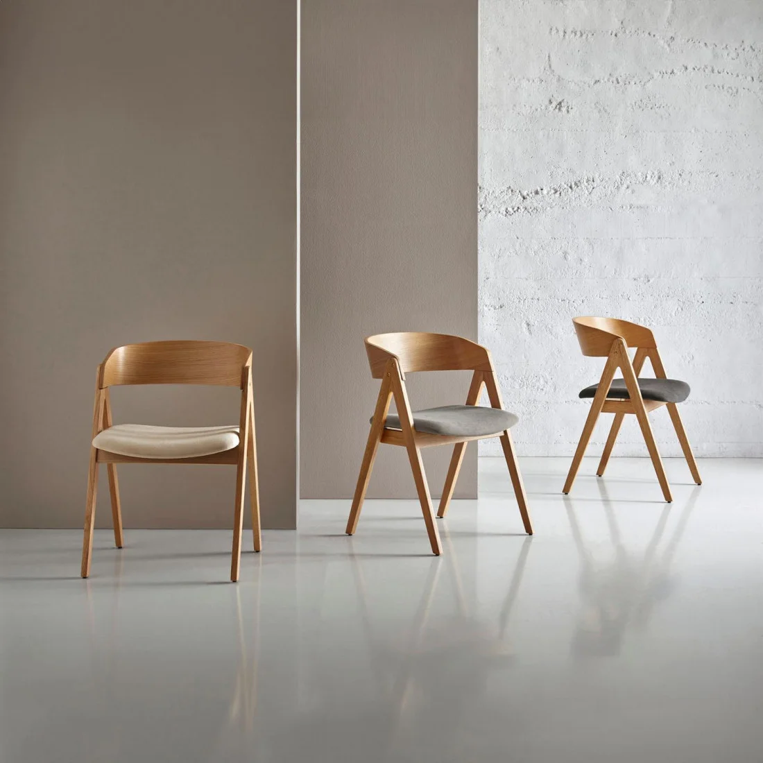 La silla CALLIE destaca por su diseño original, con un respaldo ancho y un elegante detalle de apertura que le confiere un aspecto sofisticado.