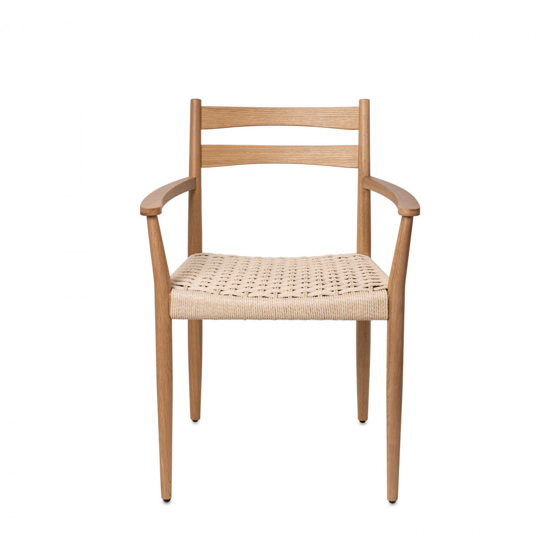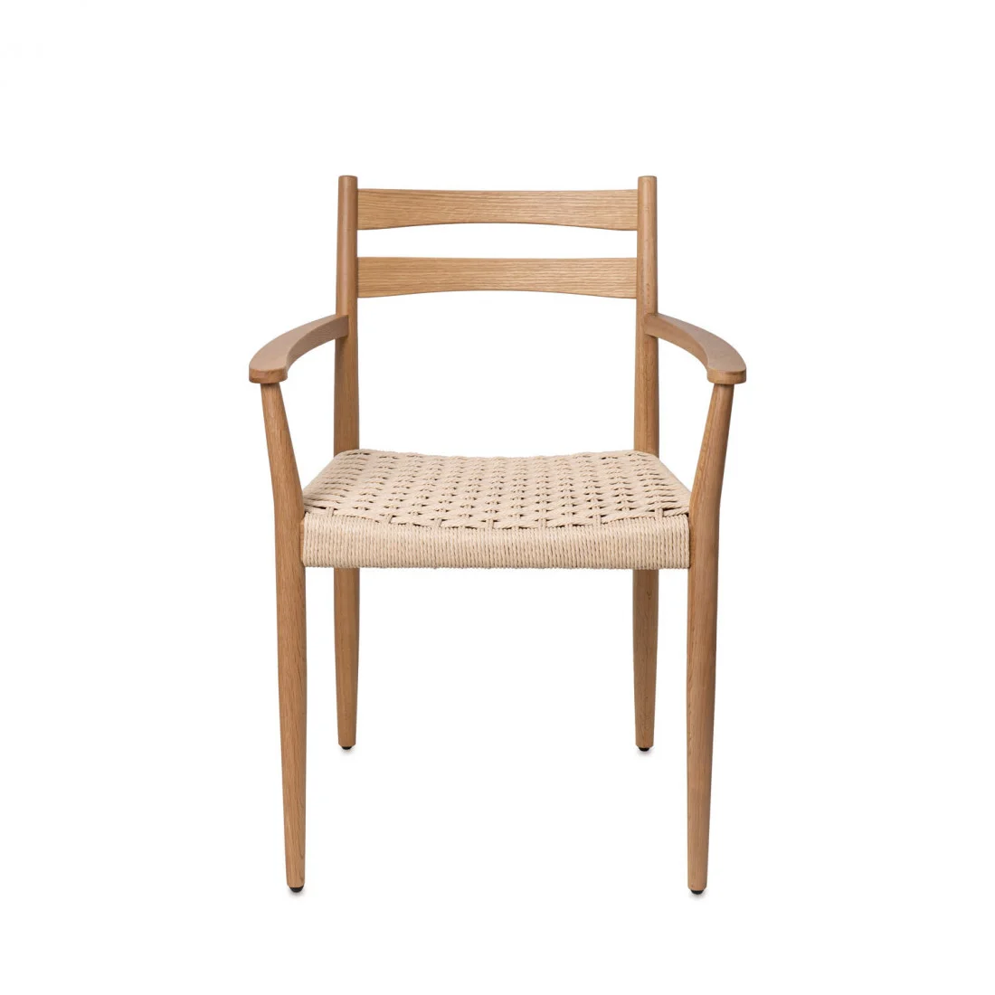 Su respaldo de líneas depuradas y curvatura ergonómica, junto con unos apoyabrazos sutilmente integrados, hacen de esta silla una opción ideal para comedores, salones o espacios de lectura.