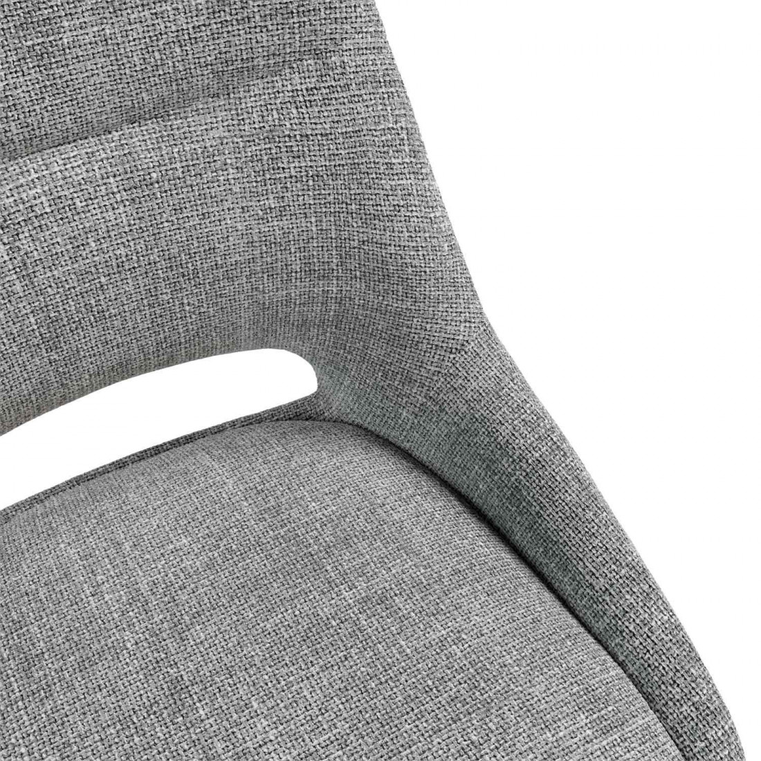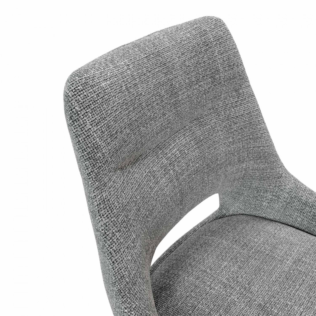 Tapizado en un elegante tejido gris 100% poliéster, y con un distintivo agujero entre el respaldo y el asiento, este taburete ofrece un diseño único y peculiar.