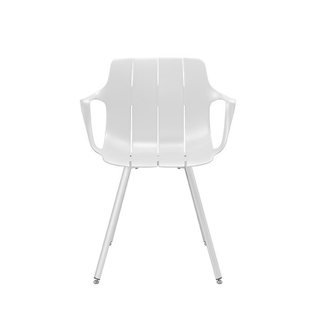 La silla YAMAL está formada por un asiento, respaldo y brazos moldeados en una única pieza de polipropileno, ofreciendo un soporte ergonómico que se adapta a la perfección al cuerpo.