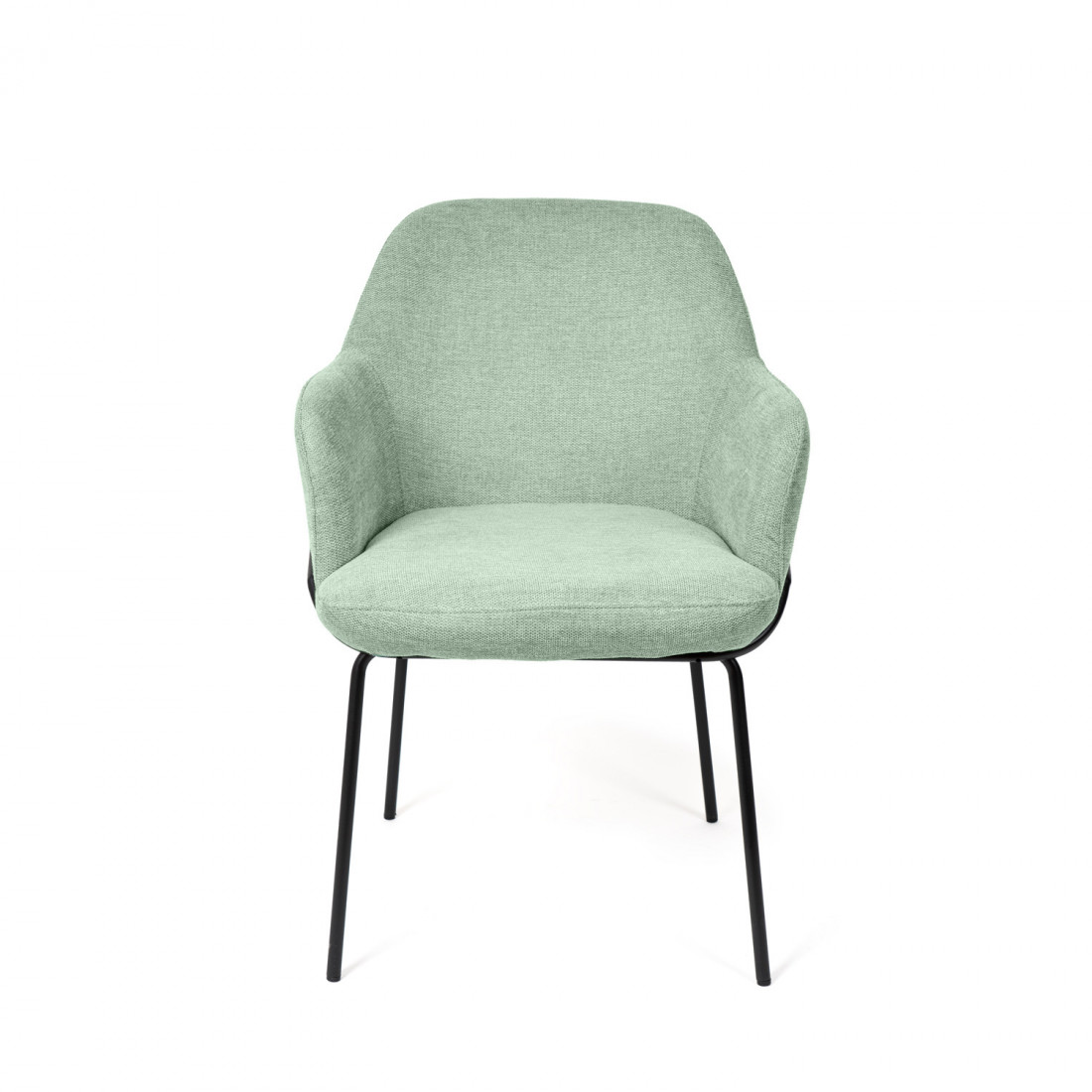 El tapizado en color menta, con una textura de líneas horizontales, aporta un toque de sofisticación y modernidad. Las patas cónicas metálicas, acabadas en color negro, no solo añaden un contraste visual...