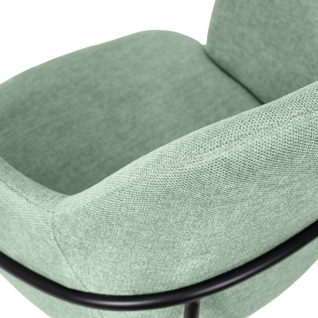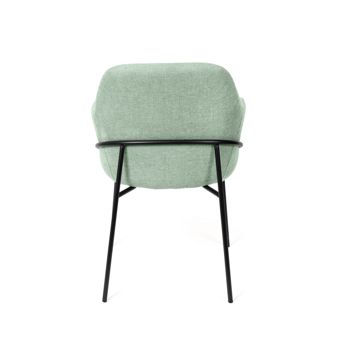 Su estética moderna y contemporánea se ve realzada por la combinación del tapizado en color menta y las barras metálicas de las patas. Además, el refuerzo en el respaldo trasero no solo proporciona una mayor resistencia, sino que también añade un toque de elegancia.