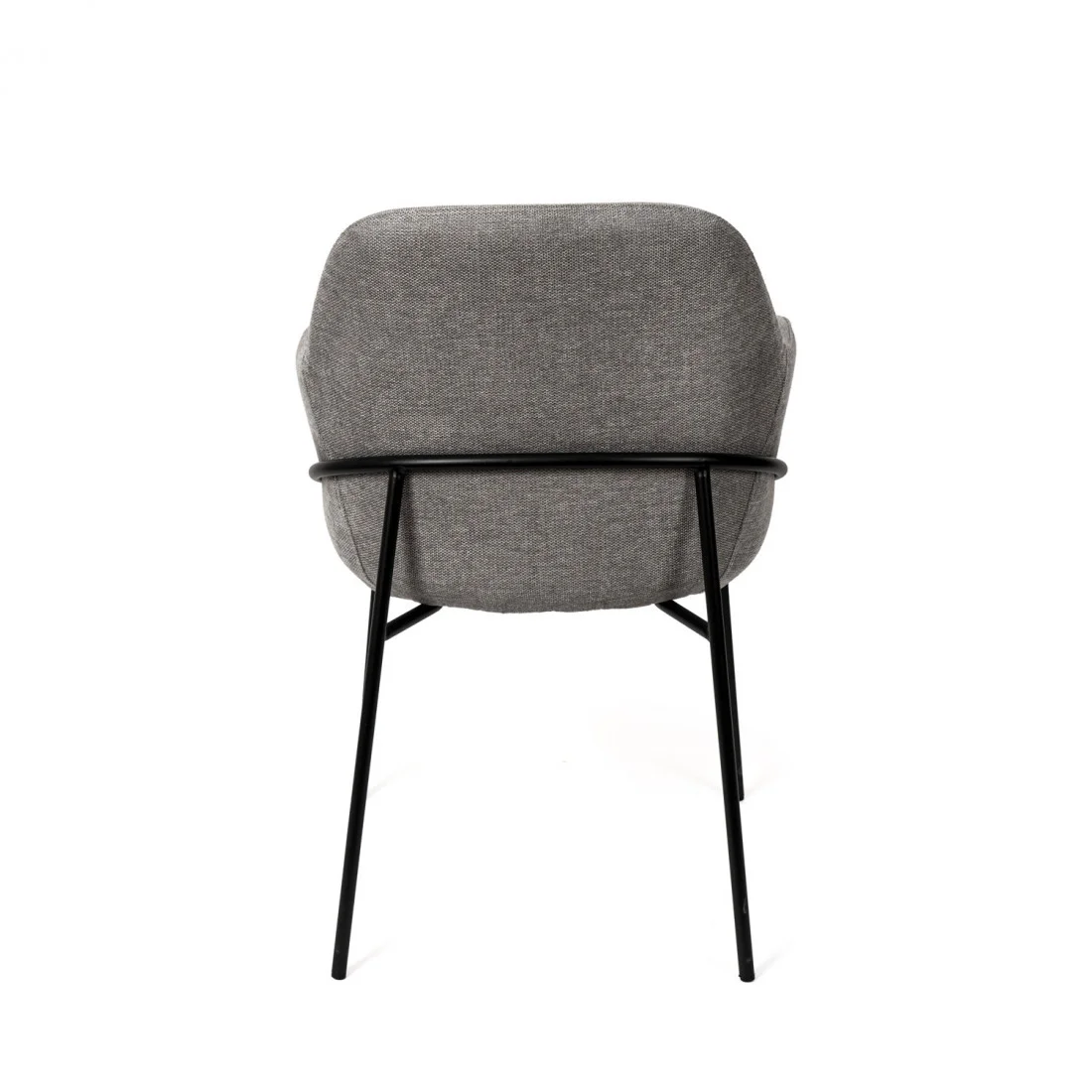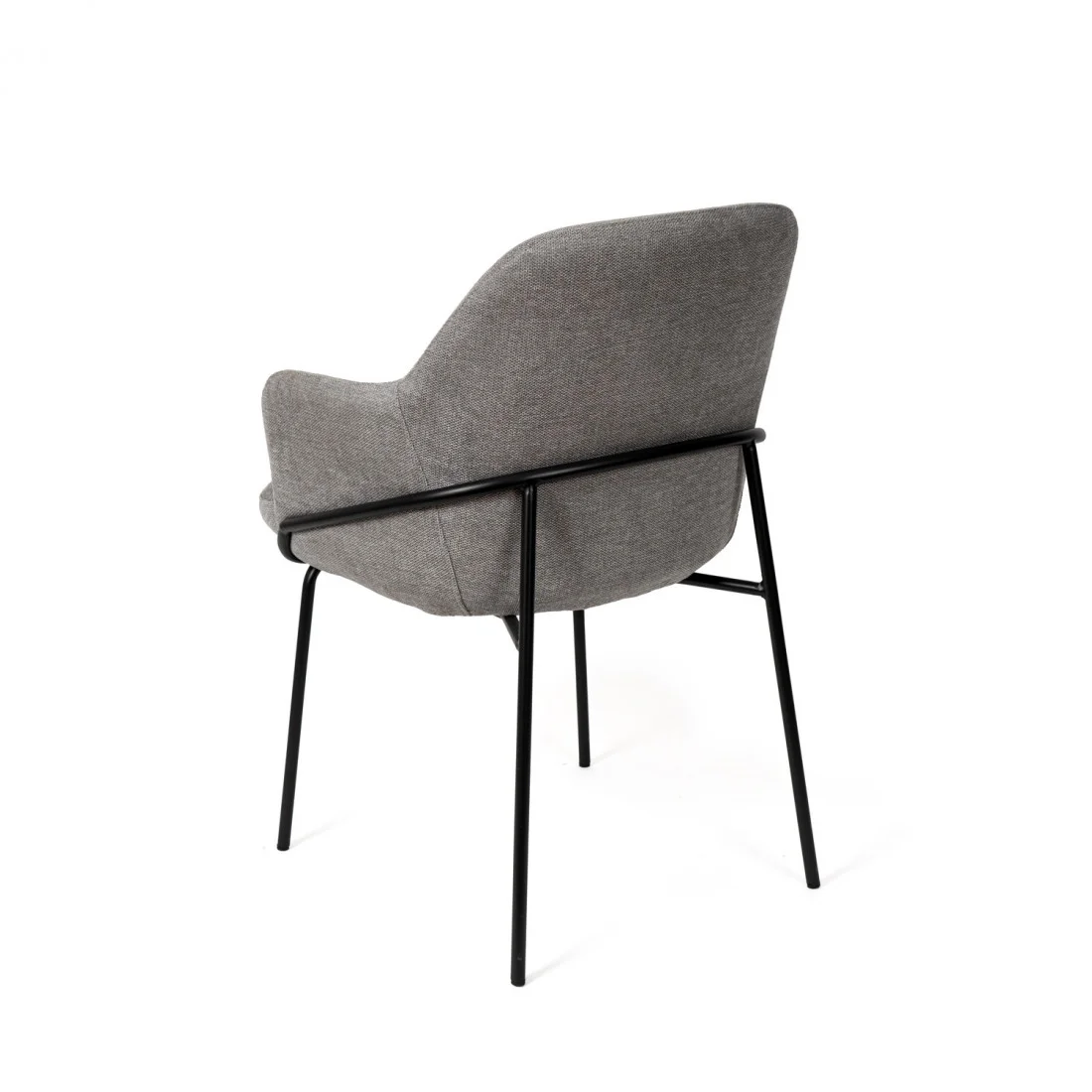 Su estética moderna y contemporánea se ve realzada por la combinación del tapizado en color gris oscuro y las barras metálicas de las patas. Además, el refuerzo en el respaldo trasero no solo proporciona una mayor resistencia, sino que también añade un toque de elegancia.